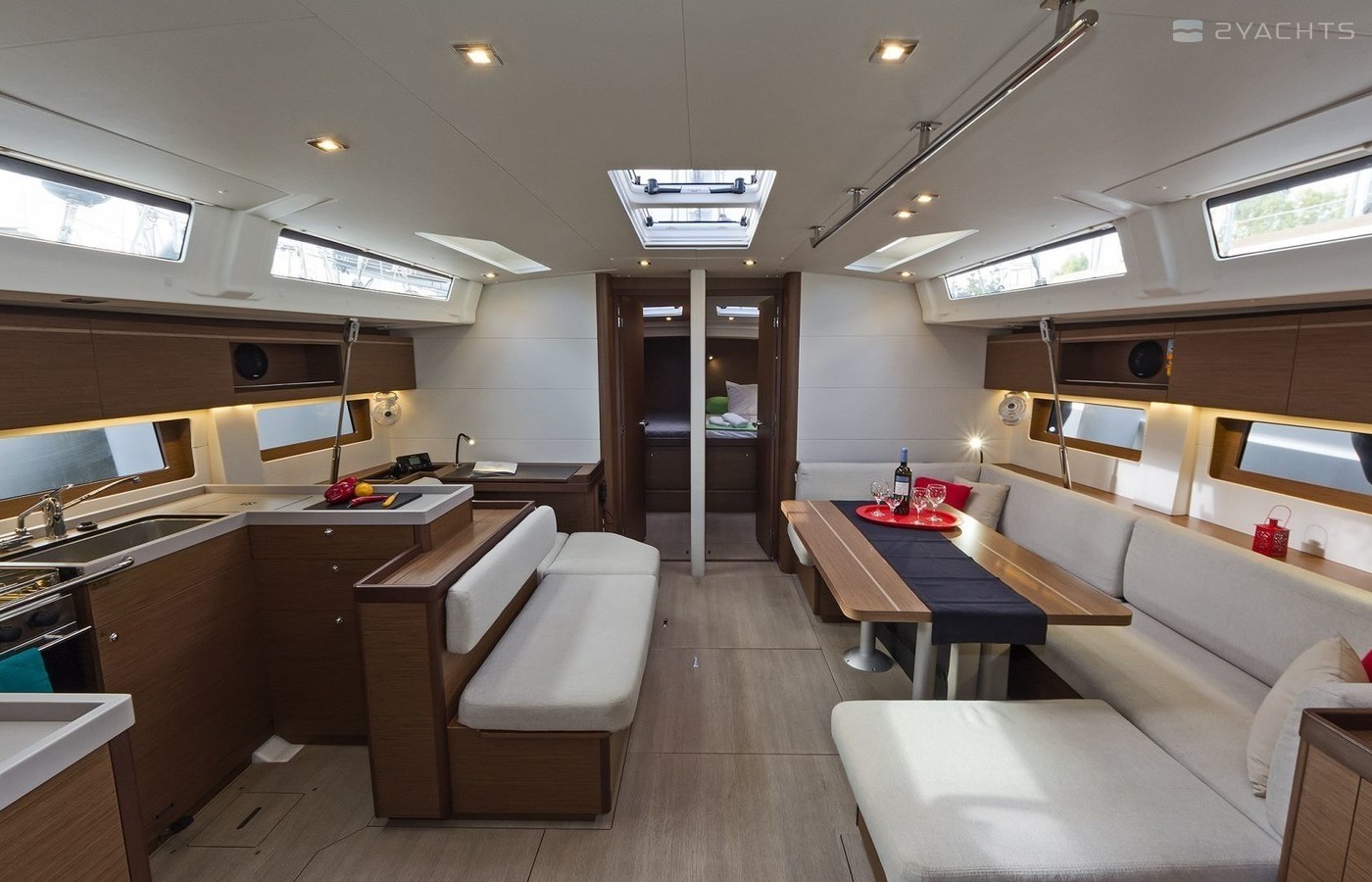 Boat equipment features rolling mainsail, electric winches, solar panels, generator, bimini and bow thruster. It also boasts a heating, air conditioning, an audio system, outside speakers and inside speakers. The fully-equipped galley includes a freezer, oven, cooker, sink and kitchen utensils.