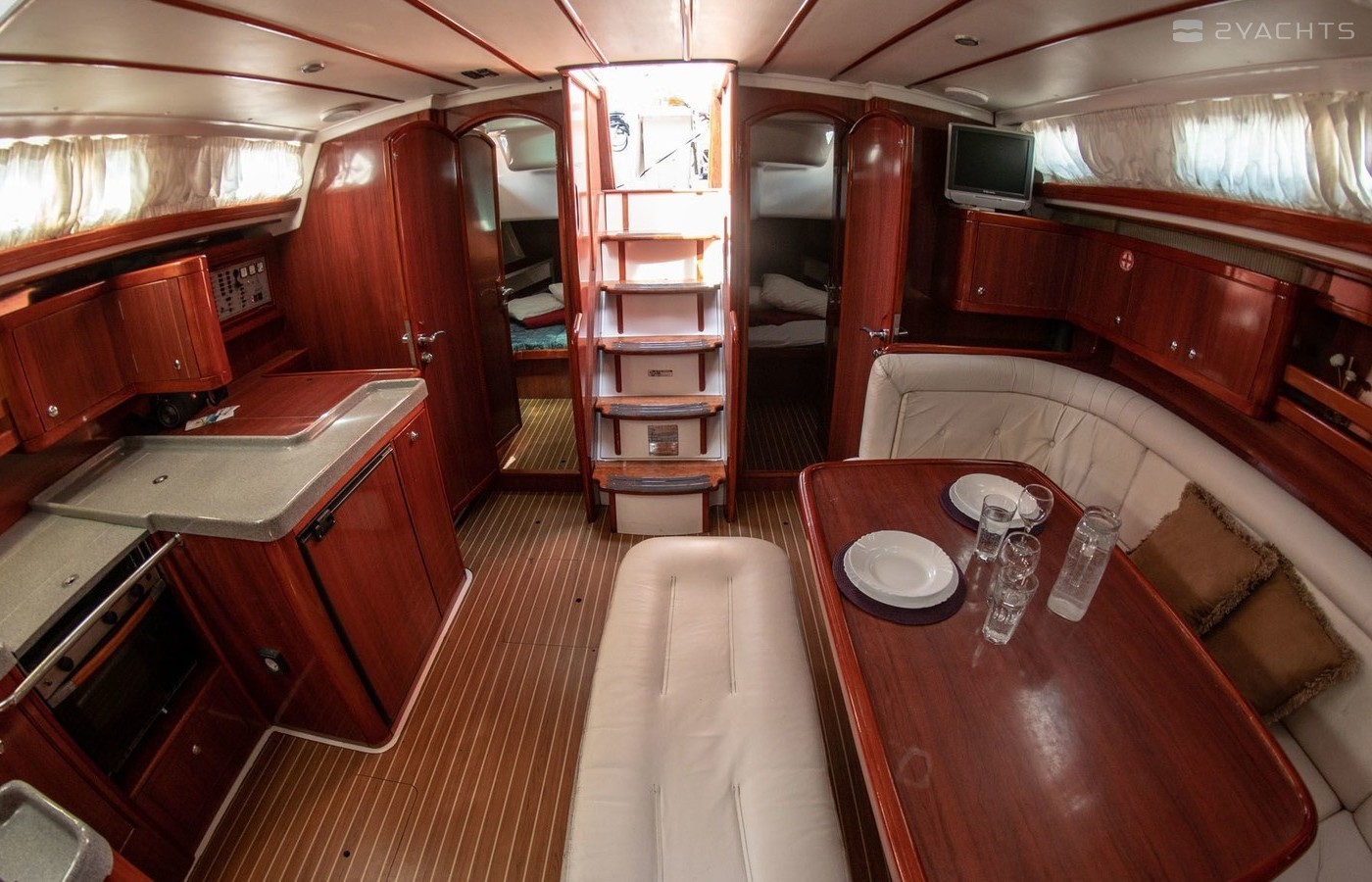Boat equipment features rolling mainsail, solar panels, generator, salon gps plotter, bimini and bow thruster. It also boasts a flat screen tv, heating, air conditioning, an audio system and dvd player. The fully-equipped galley includes a freezer, oven, cooker, sink and kitchen utensils.