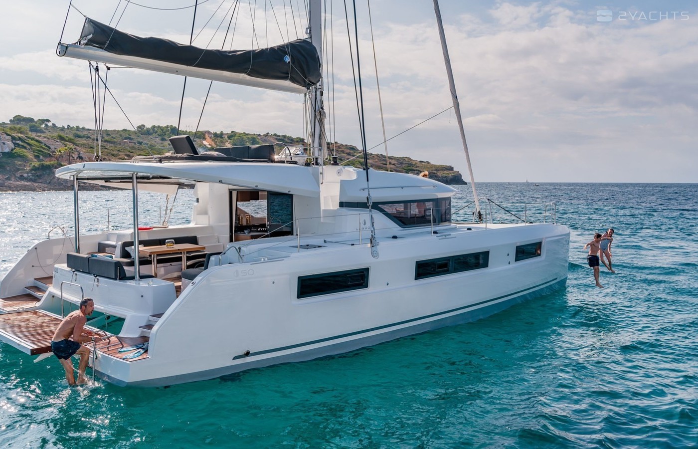 This catamaran is operated by the charter company Sailing in Blue.