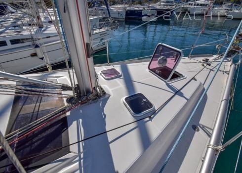 Boat equipment features classical mainsail, electric winches, solar panels, salon gps plotter, bimini and outside gps plotter. It also boasts a heating, air conditioning, an audio system, outside speakers and inside speakers. The fully-equipped galley includes an oven, cooker, sink and kitchen utensils.