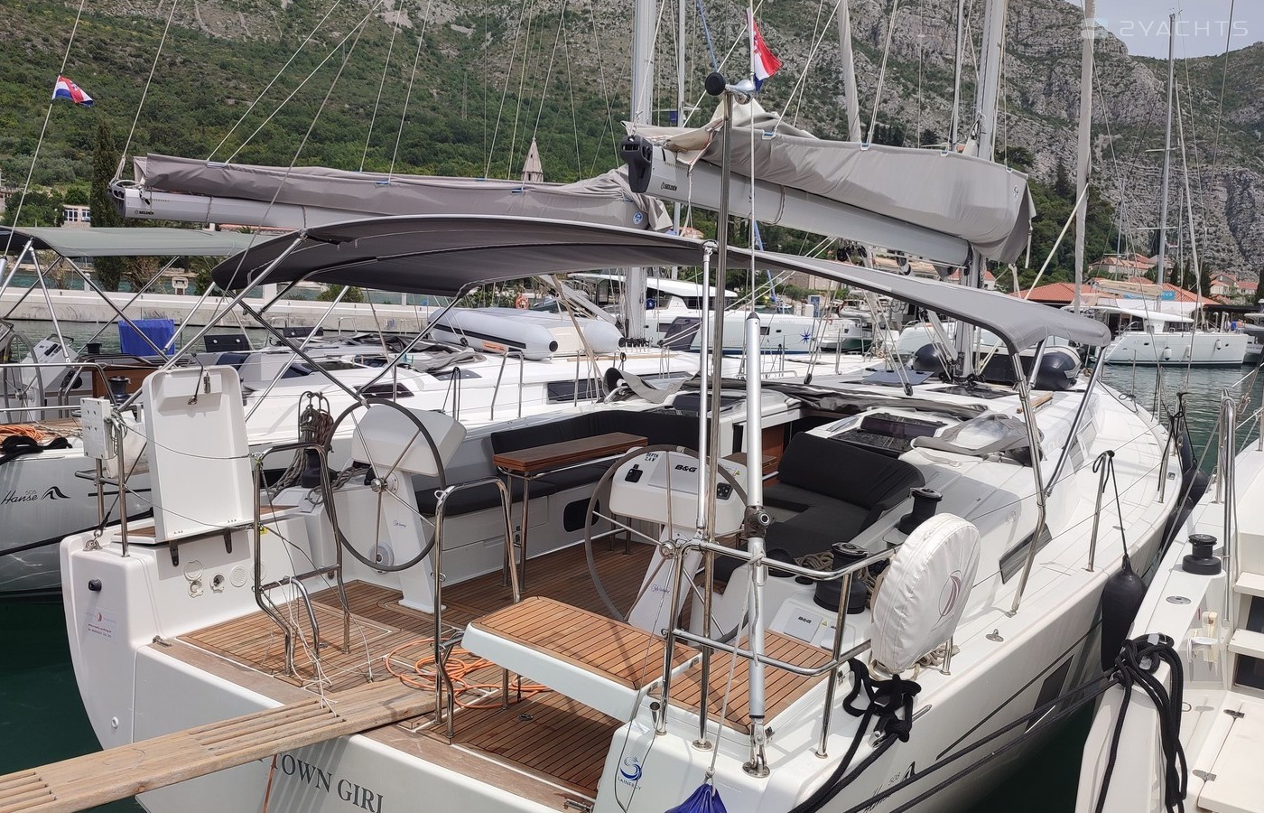 6-cabin sailing yacht Hanse 508 - Uptown Girl was built in 2019, and it is docked in ACI Marina Dubrovnik, Croatia.