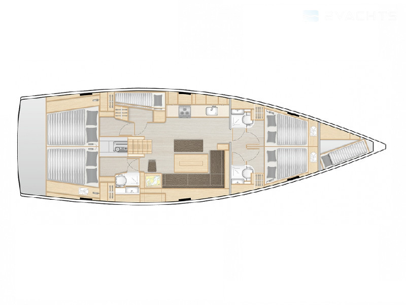 Boat equipment features classical mainsail, electric winches, bimini and bow thruster. It also boasts a flat screen tv, heating, an audio system, outside speakers and inside speakers. The fully-equipped galley includes a freezer, oven, cooker, sink and kitchen utensils.