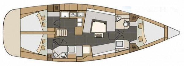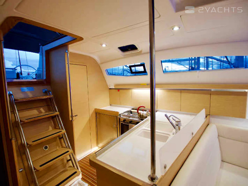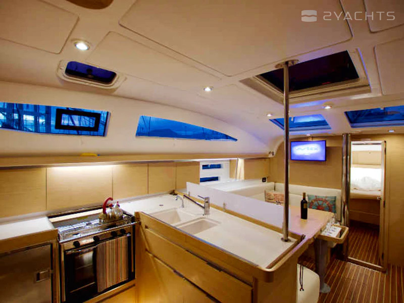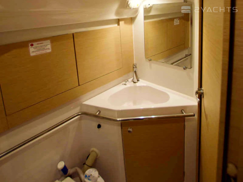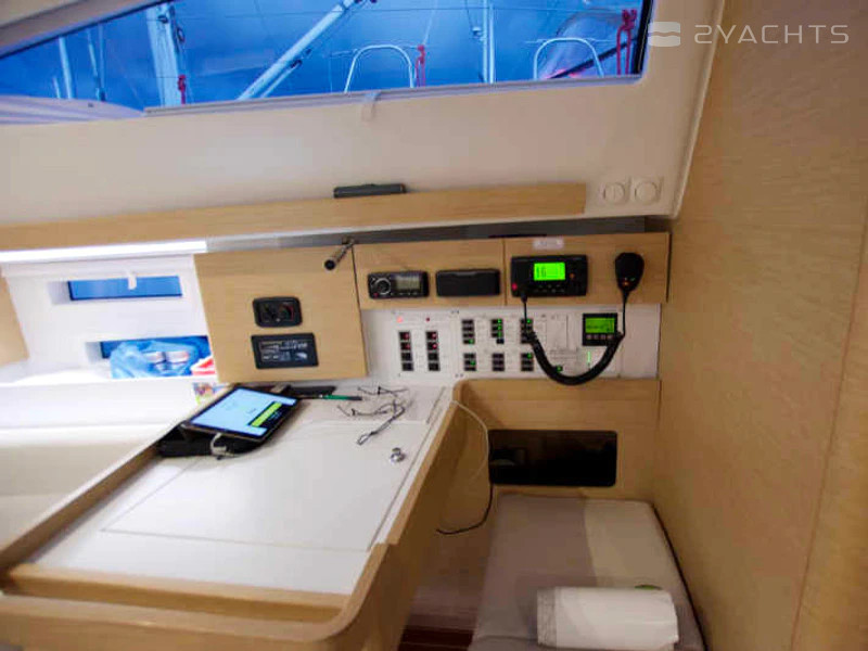 Boat equipment features rolling mainsail, generator, salon gps plotter, bimini and bow thruster. It also boasts a heating, an audio system, outside speakers and inside speakers. The fully-equipped galley includes an oven, cooker, sink and kitchen utensils.