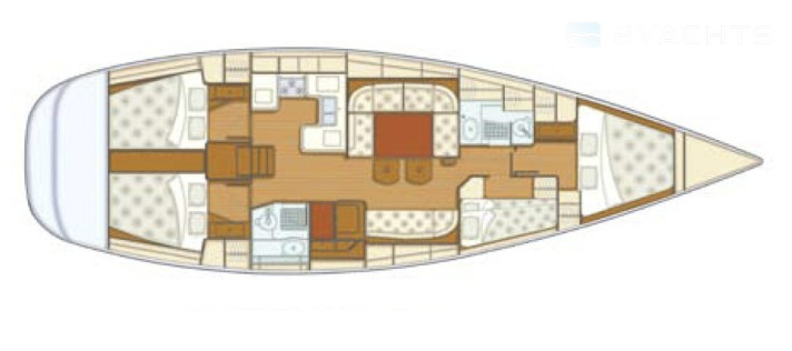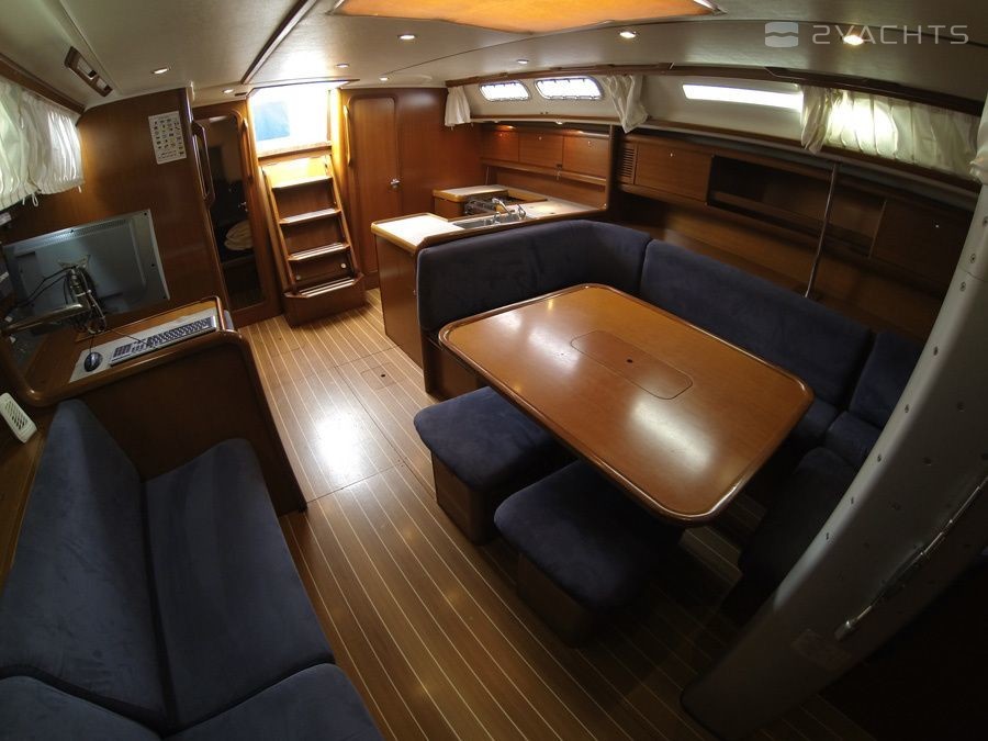 Boat equipment features classical mainsail, electric winches, generator, salon gps plotter, bimini and bow thruster. It also boasts a flat screen tv, heating, an audio system, dvd player and outside speakers. The fully-equipped galley includes an oven, cooker, sink and kitchen utensils.