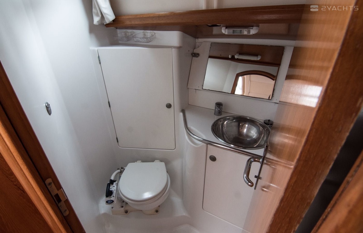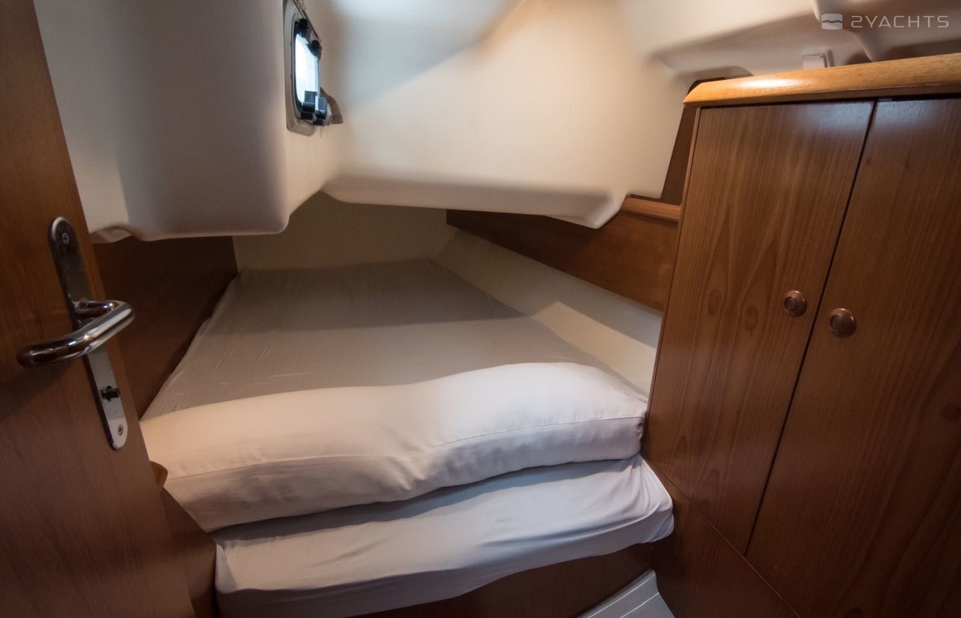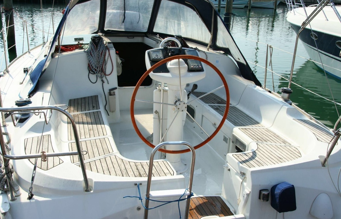 Boat equipment features classical mainsail, bimini and outside gps plotter. It also boasts an an audio system, outside speakers and inside speakers. The fully-equipped galley includes a coffee machine, oven, cooker, sink and kitchen utensils.