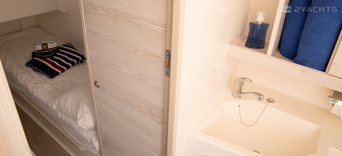 A well-equipped galley with oven, cooker, sink and kitchen utensils is prepared to facilitate cooking. There is also a bbq and microwave on board.