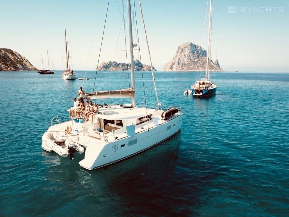 5-cabin catamaran Lagoon 400 S2 - Martina One was built in 2013, and it is docked in Club Nàutic Sant Antoni de Portmany, Spain.