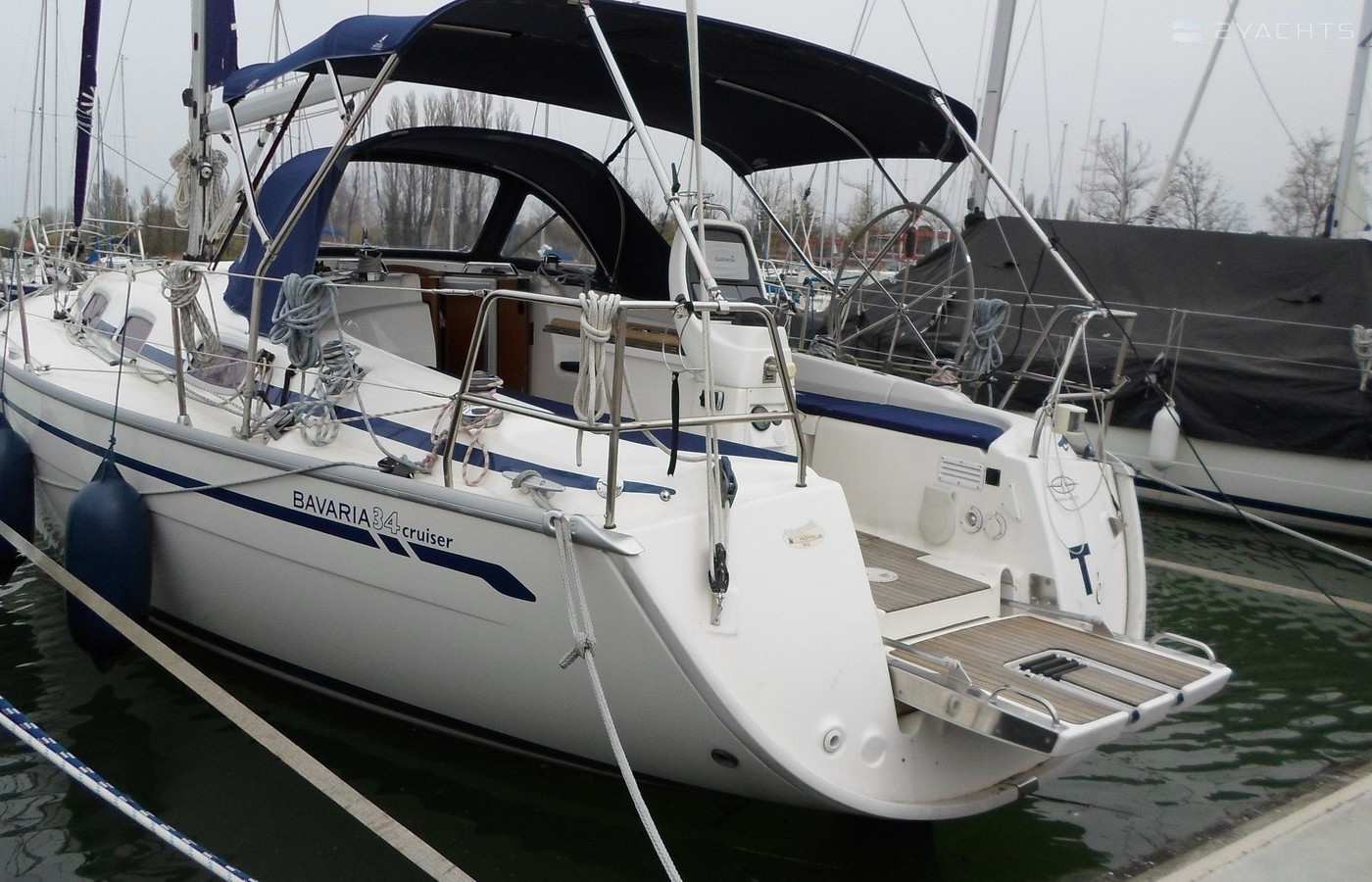 2-cabin sailing yacht Bavaria 34 Cruiser - Nefertiti was built in 2008, and it is docked in Alsóörs Marina, Hungary.