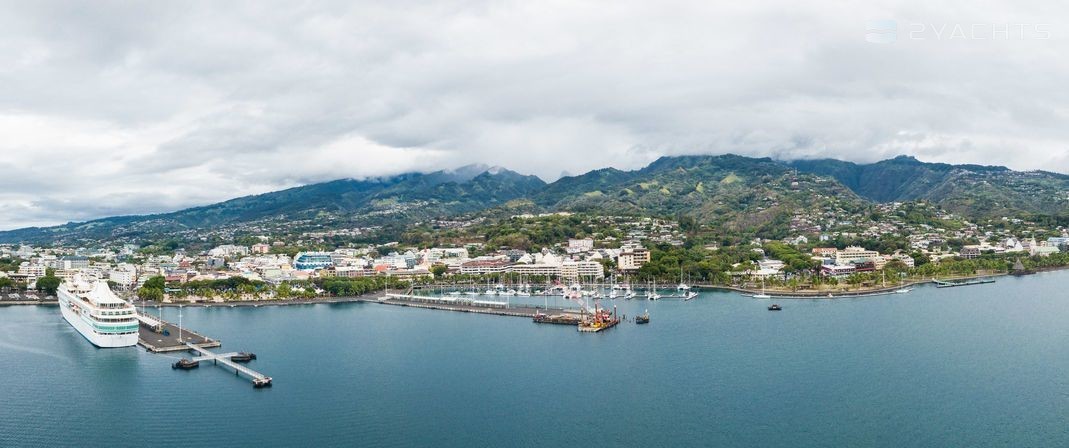 3-cabin catamaran Ocean Voyager 53 - Poe Mana was built in 2017, and it is docked in Papeete Marina, French Polynesia.