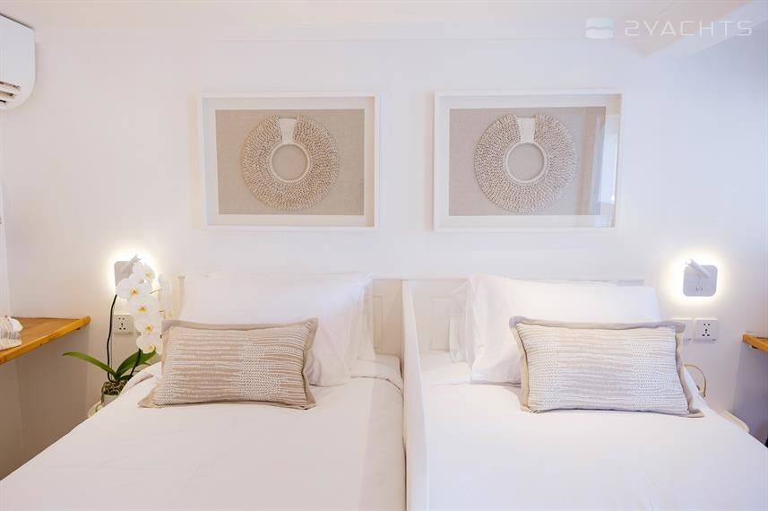 Aliikai can accommodate up to 15 people in 6 double cabins and 1 triple cabin. Pillows and blankets are included in the price.