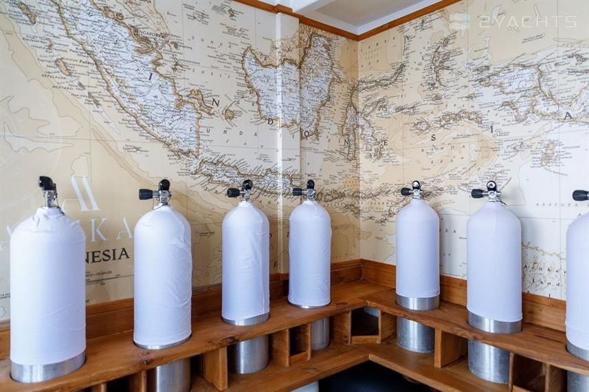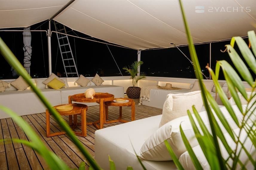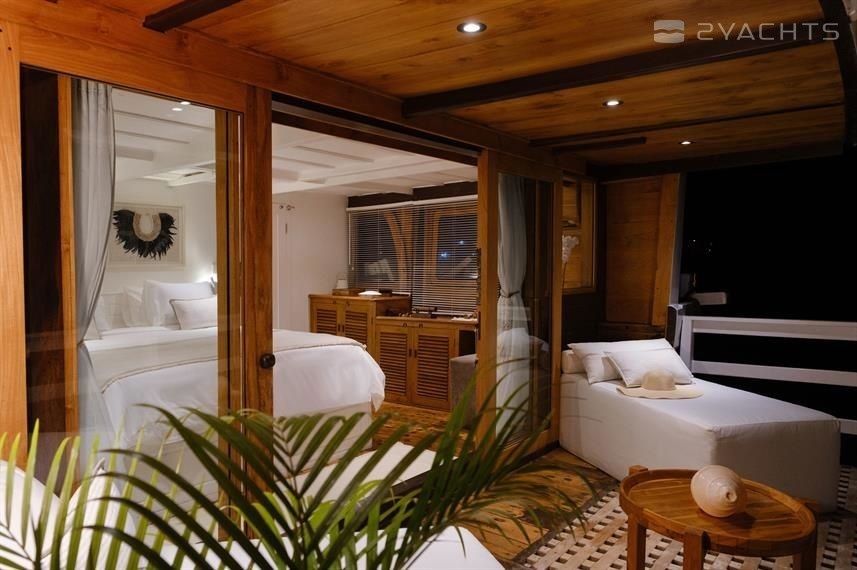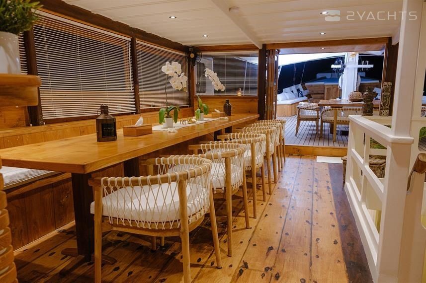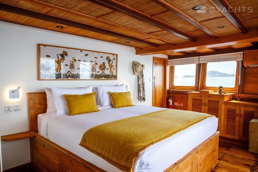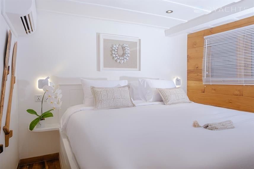 7-cabin sailing yacht Custom Built Phinisi - Aliikai was built in 2005, (renovated in 2020,) and it is docked in Labuan Bajo Marina, Indonesia.