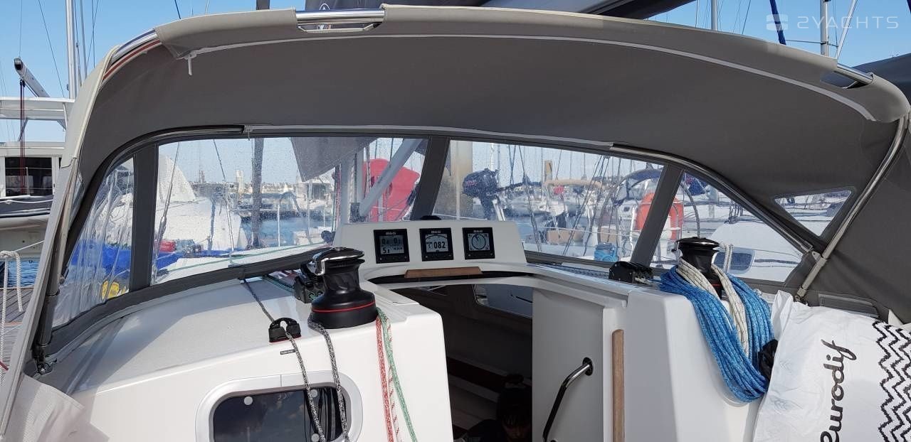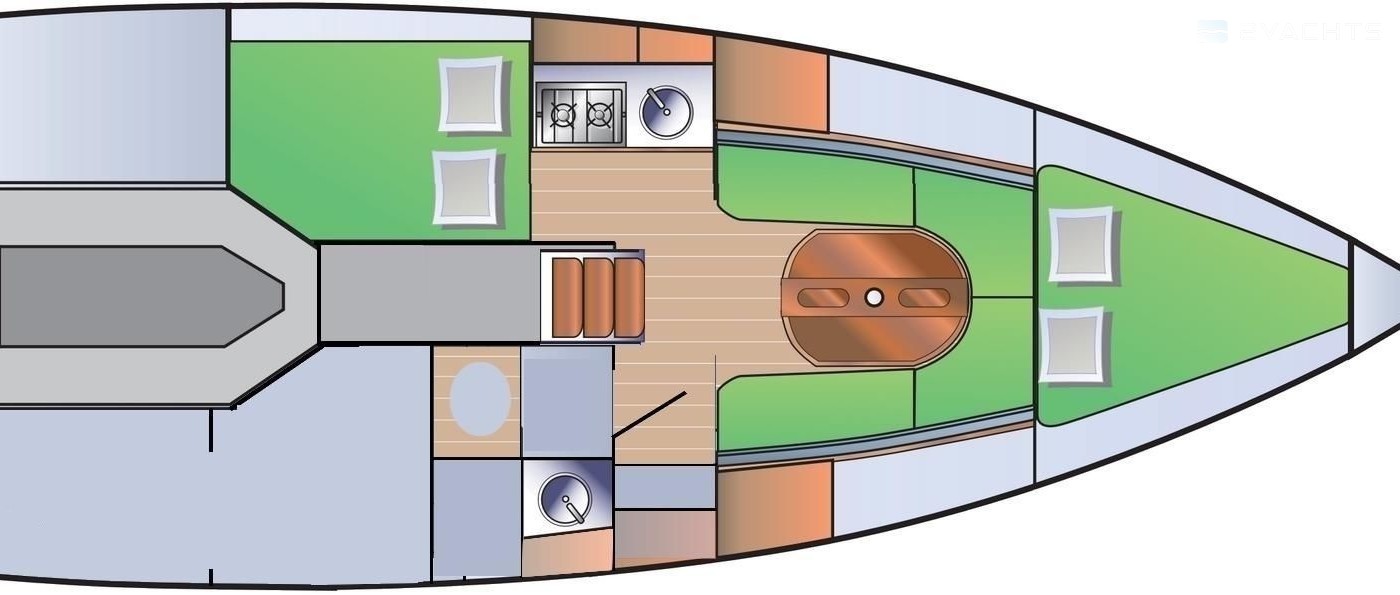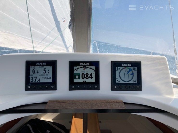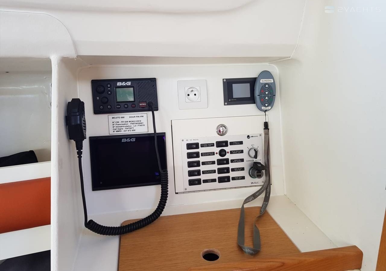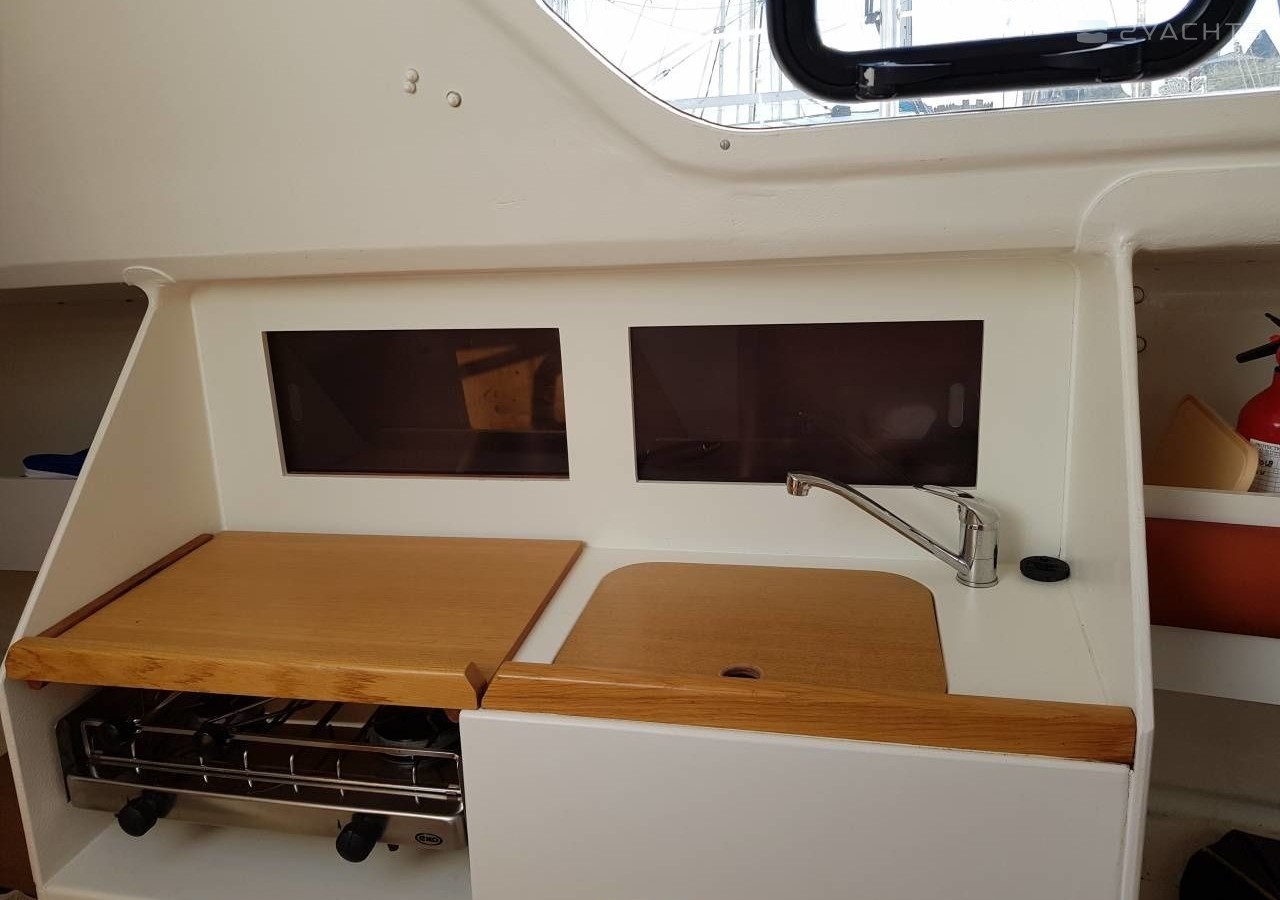 Boat equipment features classical mainsail, salon gps plotter and bimini. It also boasts an an audio system, outside speakers and inside speakers. The fully-equipped galley includes a cooker, sink and kitchen utensils.
