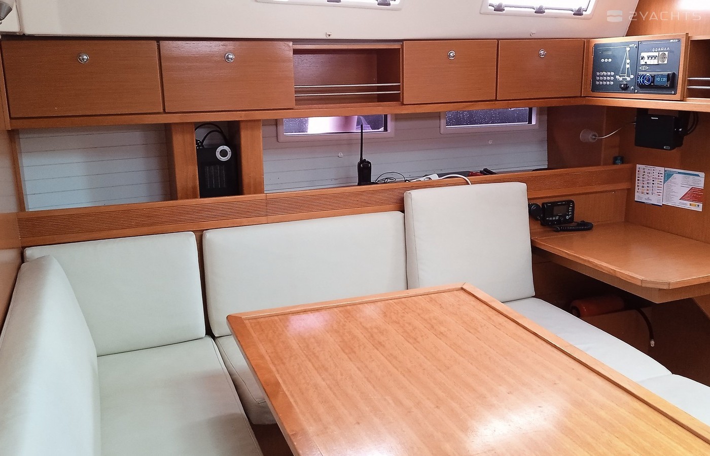 Boat equipment features rolling mainsail, salon gps plotter and bimini. It also boasts a flat screen tv, an audio system, outside speakers, water skis and inside speakers. The fully-equipped galley includes a freezer, oven, cooker, sink and kitchen utensils.