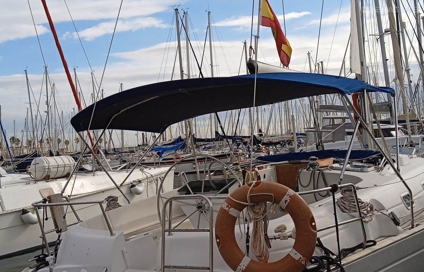 3-cabin sailing yacht Beneteau Oceanis 461 - Pura Vida was built in 2001, and it is docked in Port Olimpic, Spain.