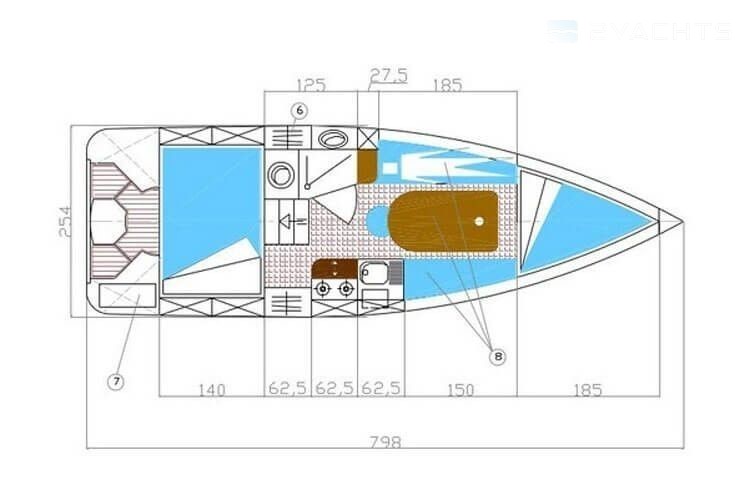 Marat 1 can accommodate up to 6 people in 2 double cabins and a saloon with 2 extra beds.