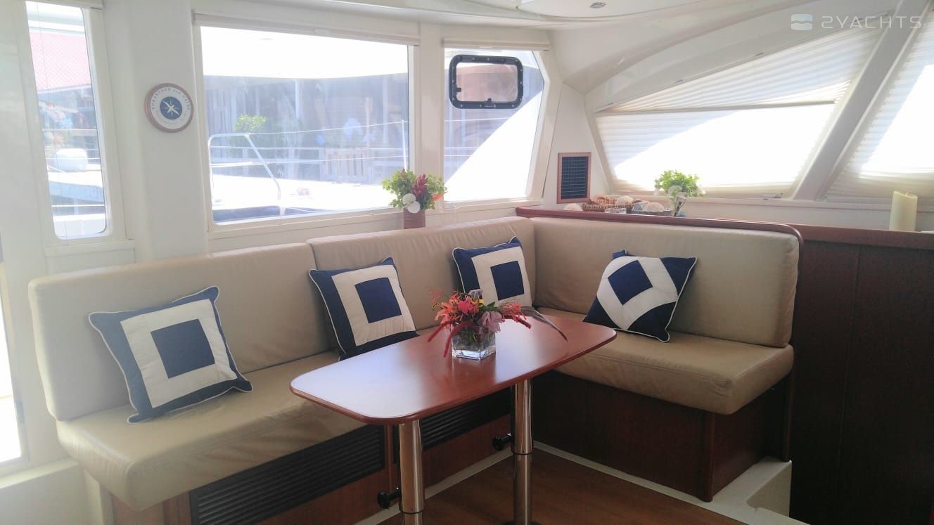 This catamaran is operated by the charter company Belize Sailing Vacations.