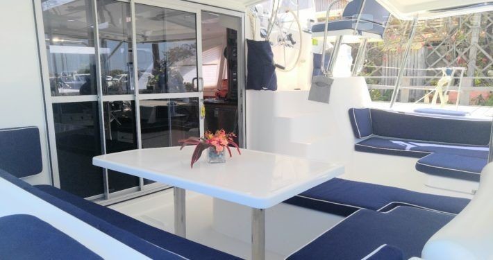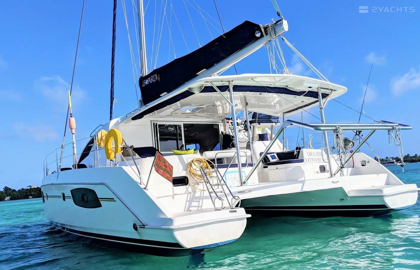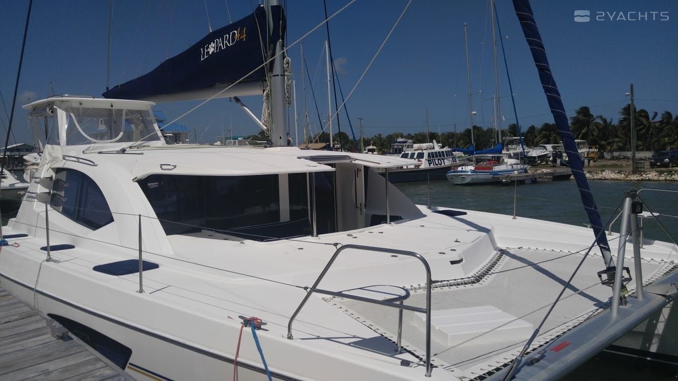 3-cabin catamaran Leopard 44 - Flojo was built in 2014, and it is docked in Cucumber Beach Marina, Belize.
