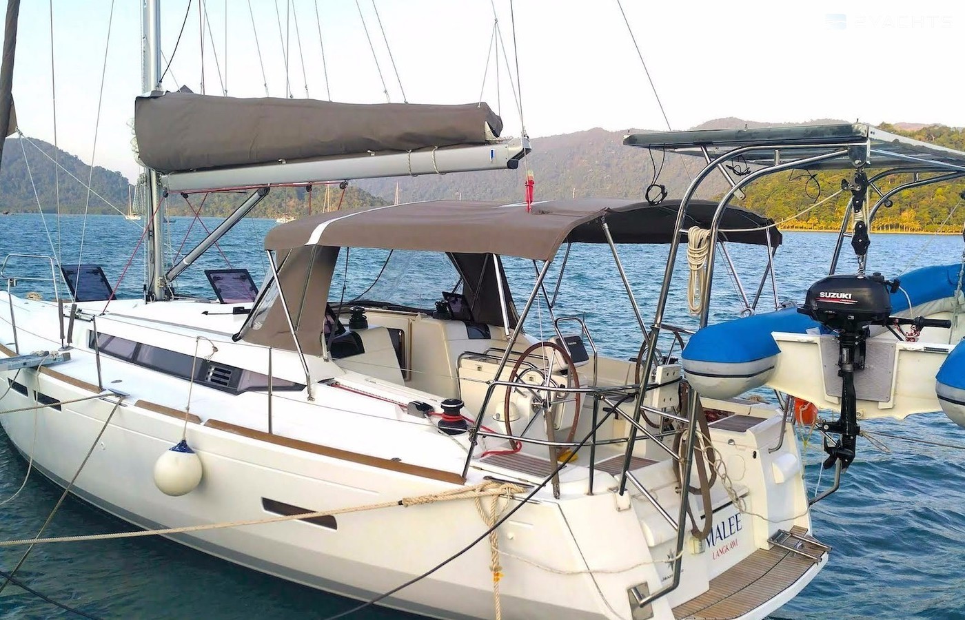 3-cabin sailing yacht Jeanneau Sun Odyssey 409 - Malee was built in 2012, and it is docked in Koh Chang Marina & Resort, Thailand.