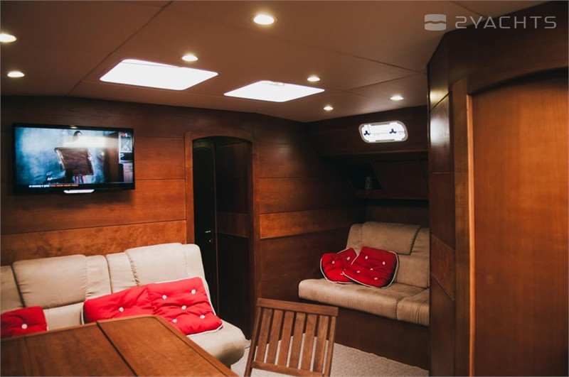 Boat equipment features rolling mainsail, generator, bimini and bow thruster. It also boasts a flat screen tv, an audio system and inside speakers. The fully-equipped galley includes a freezer, coffee machine, cooker, sink and kitchen utensils.
