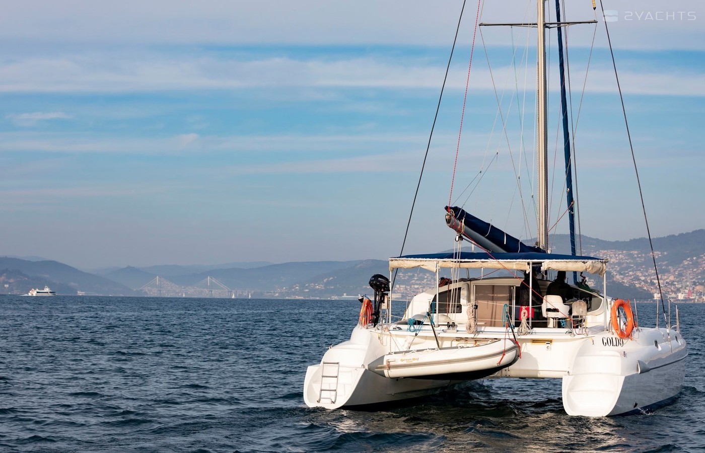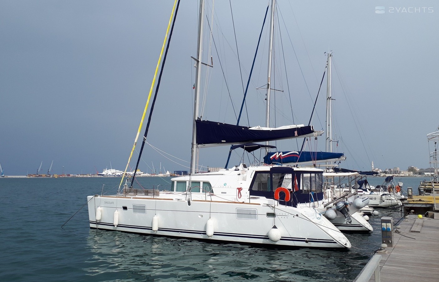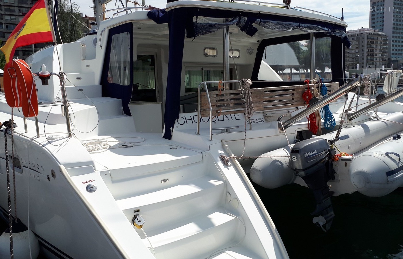 4-cabin catamaran Lagoon 400 - Chocolate was built in 2007, and it is docked in Real Club Náutico de Vigo, Spain.