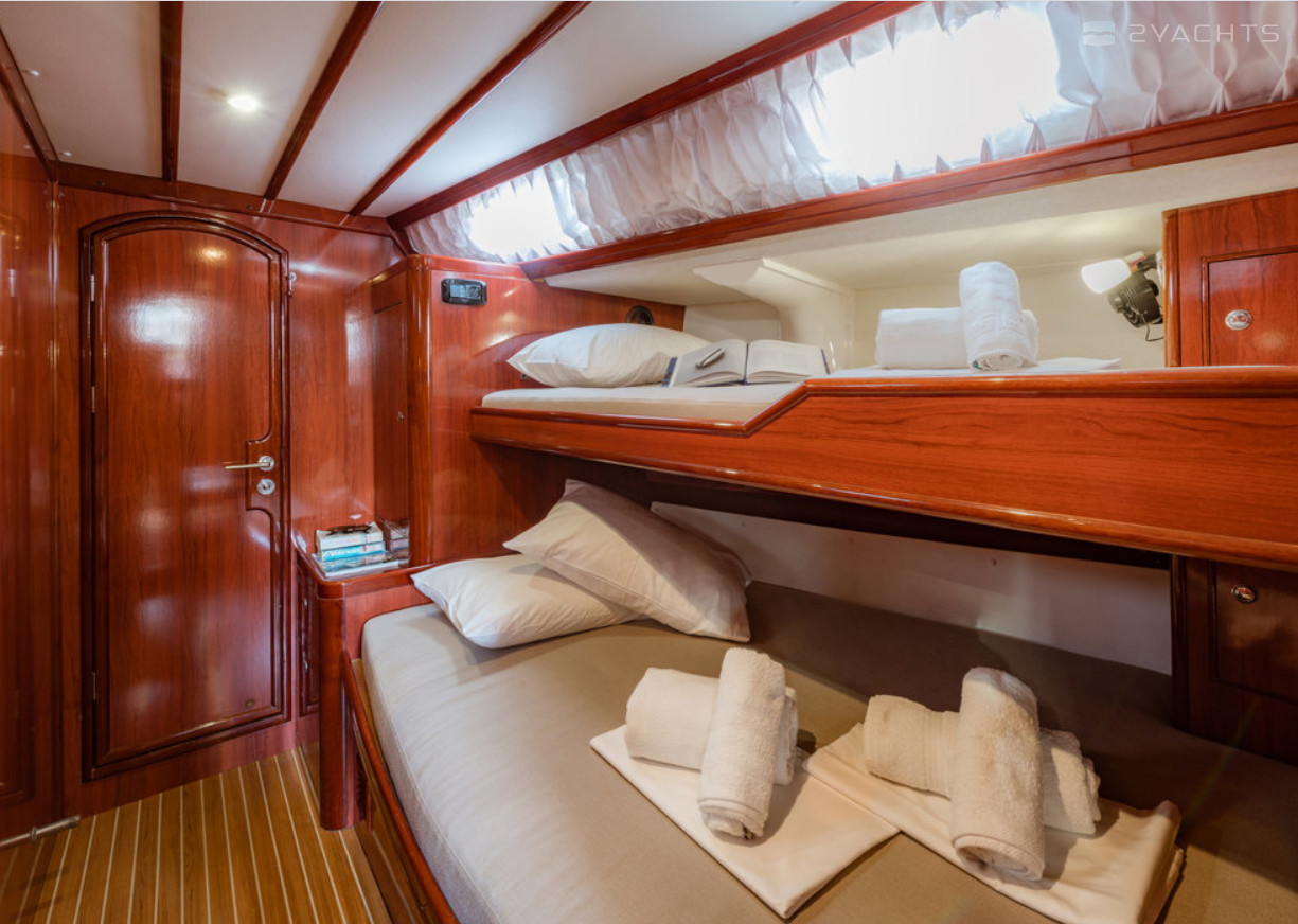 Christianna 8 can accommodate up to 14 people in 3 double cabins, 3 double cabins with a bunk bed and a saloon with 2 extra beds. Pillows and blankets are included in the price.