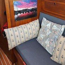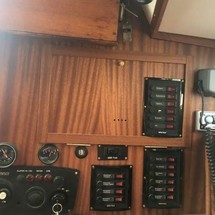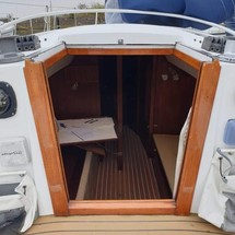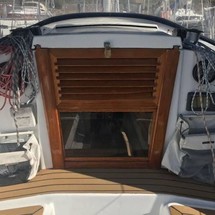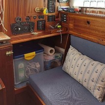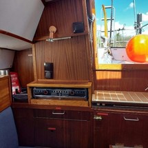 Boat equipment features classical mainsail, solar panels, bimini and outside gps plotter. It also boasts an an audio system and inside speakers. The fully-equipped galley includes a cooker and sink.