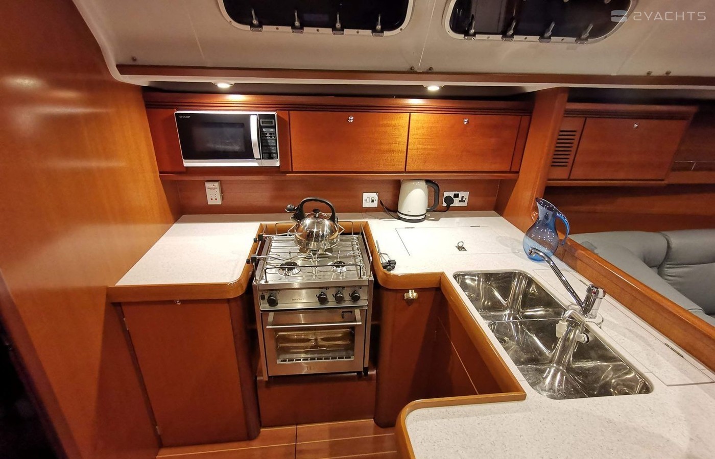 Boat equipment features classical mainsail, radar, generator, bimini and bow thruster. It also boasts a flat screen tv, heating, an audio system, outside speakers and inside speakers. The fully-equipped galley includes a microwave, oven, cooker, sink and kitchen utensils.