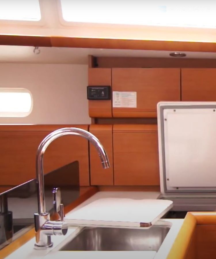 Boat equipment features classical mainsail, bimini and outside gps plotter. It also boasts a heating, an audio system, outside speakers and inside speakers. The fully-equipped galley includes a microwave, oven, cooker, sink and kitchen utensils.