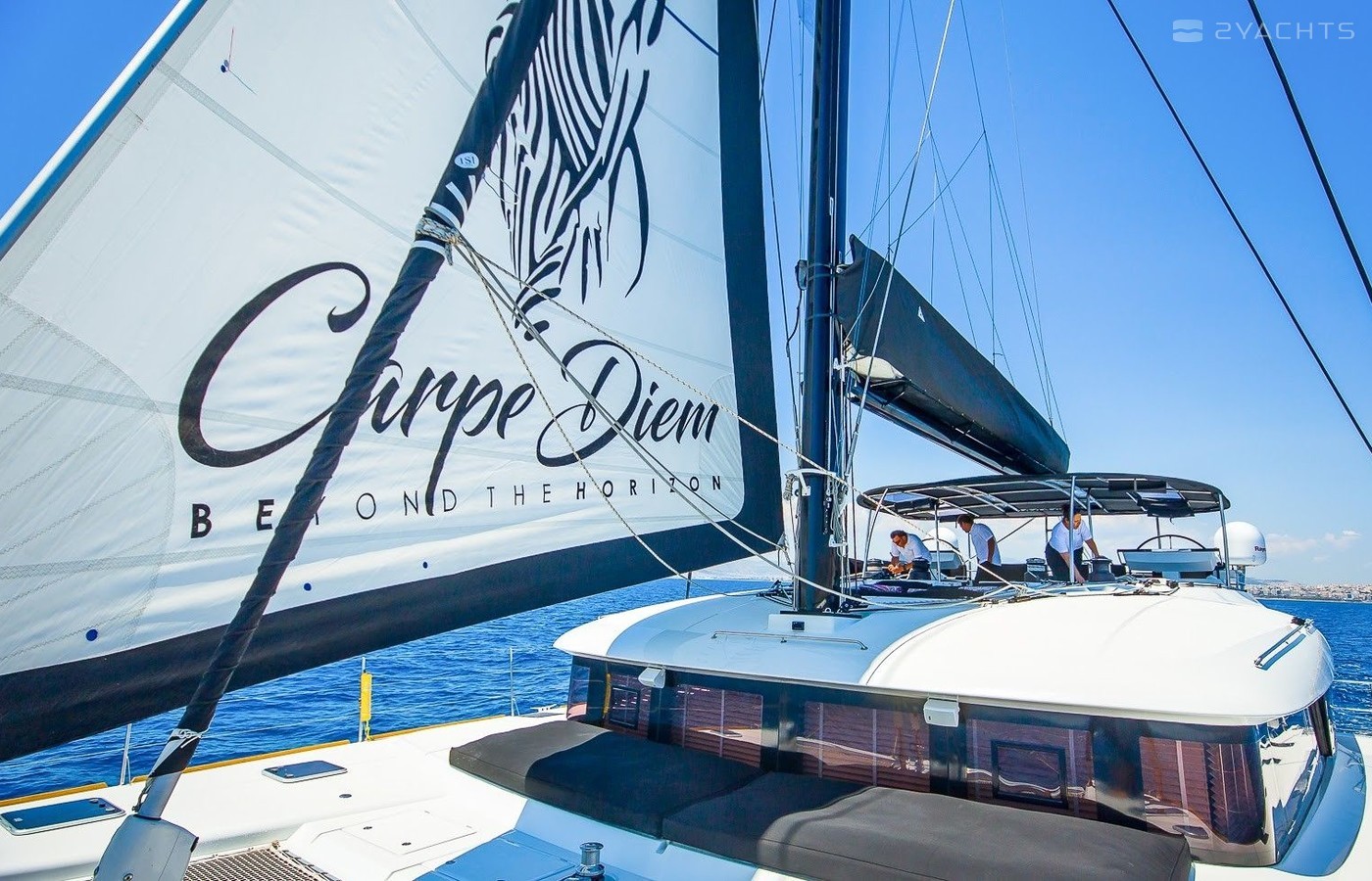 4-cabin catamaran Lagoon 620 - Carpe Diem was built in 2016, and it is docked in Marina Alimos, Greece.