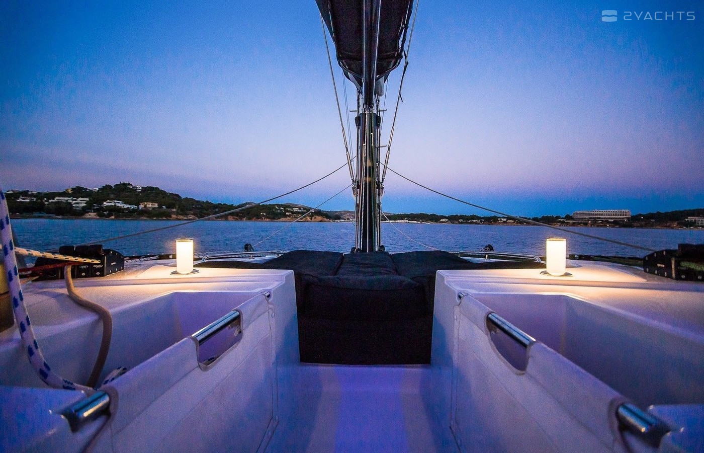 Boat equipment features classical mainsail, electric winches, solar panels, radar, generator and salon gps plotter. It also boasts a flat screen tv, heating, air conditioning, an audio system and dvd player. The fully-equipped galley includes a microwave, ice maker, freezer, oven and cooker.