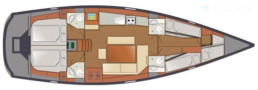 Boat equipment features classical mainsail, radar, bimini and outside gps plotter. It also boasts a flat screen tv, heating, an audio system, outside speakers and inside speakers. The fully-equipped galley includes an oven, cooker, sink and kitchen utensils.