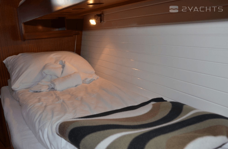 Arctic Light can accommodate up to 10 people in 2 double cabins and 3 double cabins with a bunk bed. Pillows and blankets are included in the price.