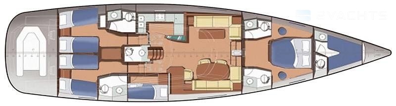 Boat equipment features classical mainsail, electric winches, radar, generator, salon gps plotter and bimini. It also boasts a flat screen tv, heating, air conditioning, an audio system and dvd player. The fully-equipped galley includes a dishwasher, freezer, oven, cooker and sink.