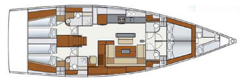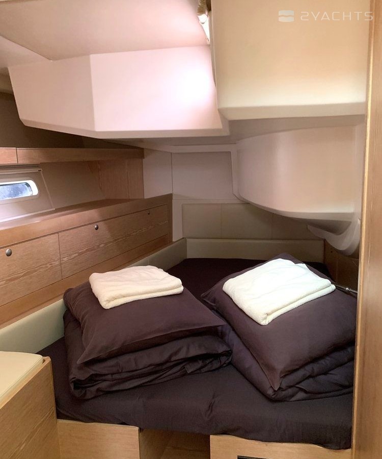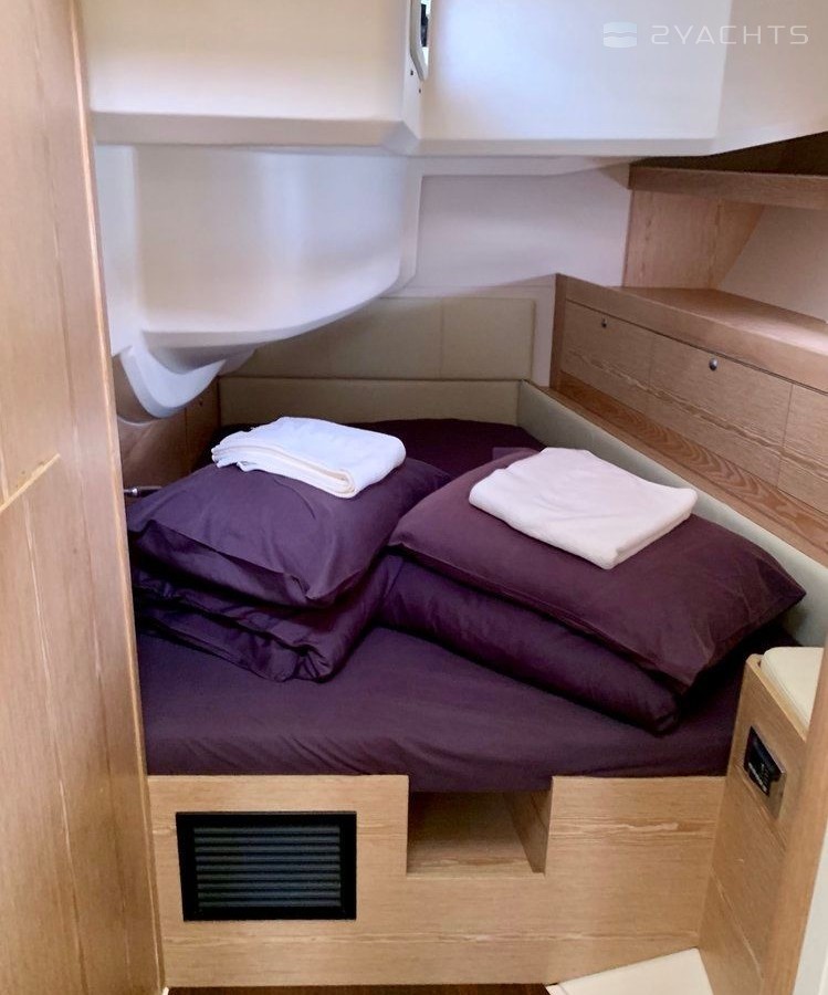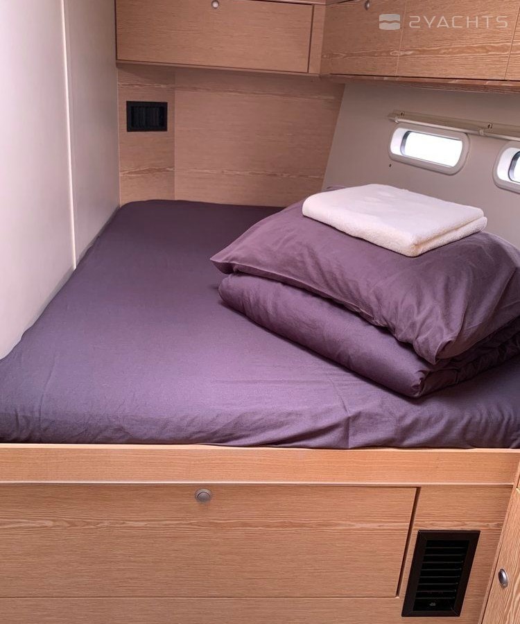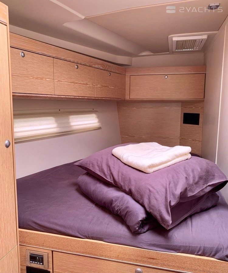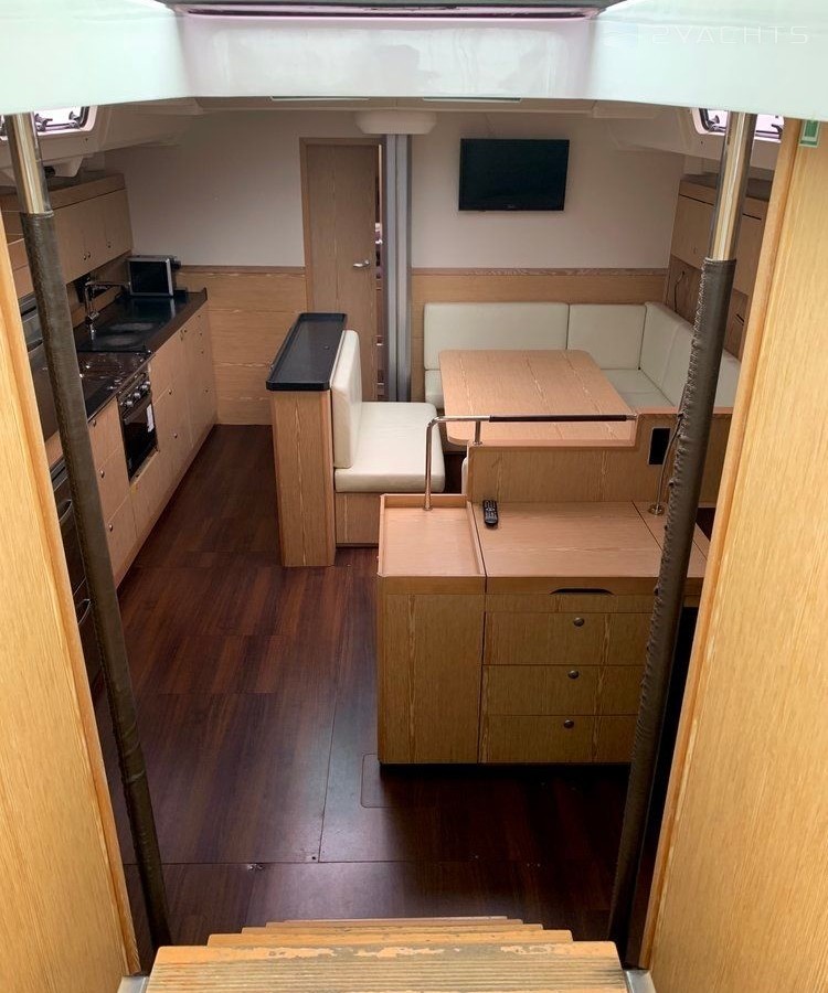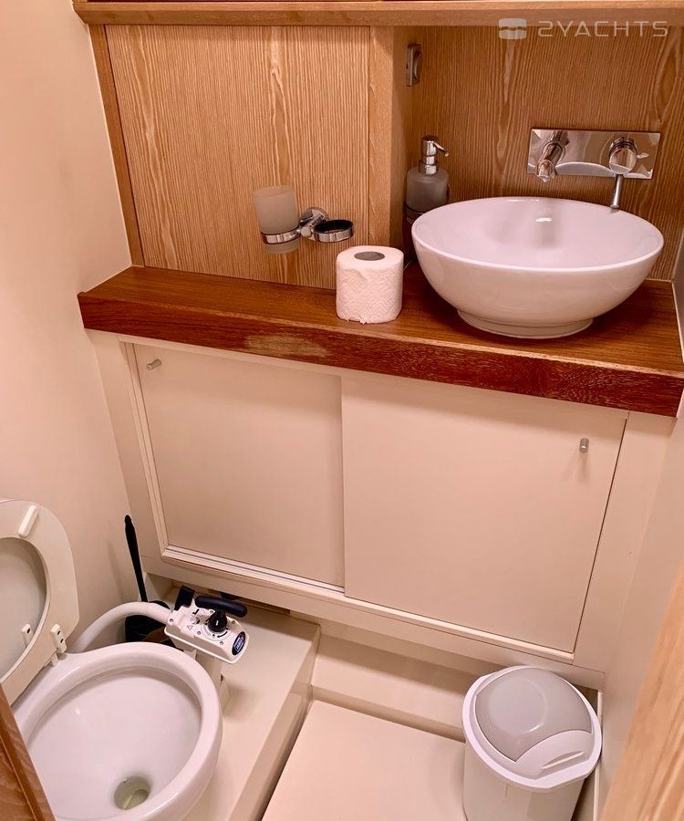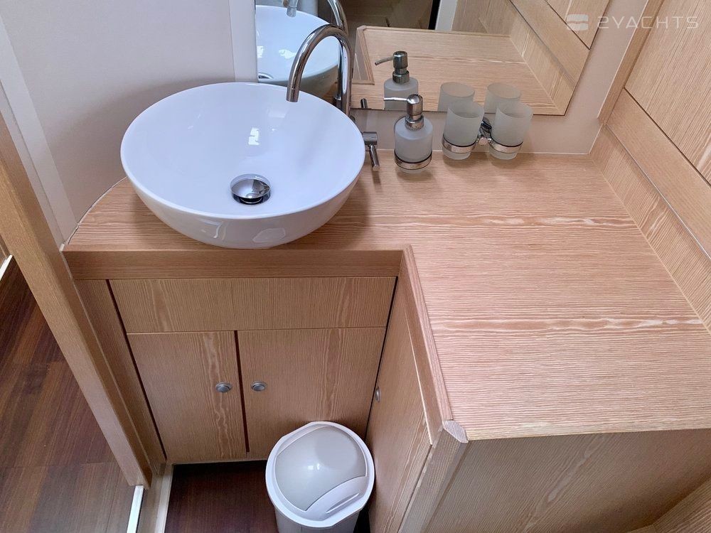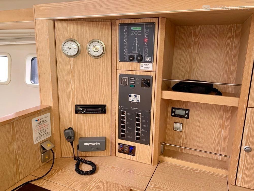 Boat equipment features classical mainsail, generator, bimini and bow thruster. It also boasts a flat screen tv, an audio system, outside speakers and inside speakers. The fully-equipped galley includes a freezer, oven, cooker, sink and kitchen utensils.