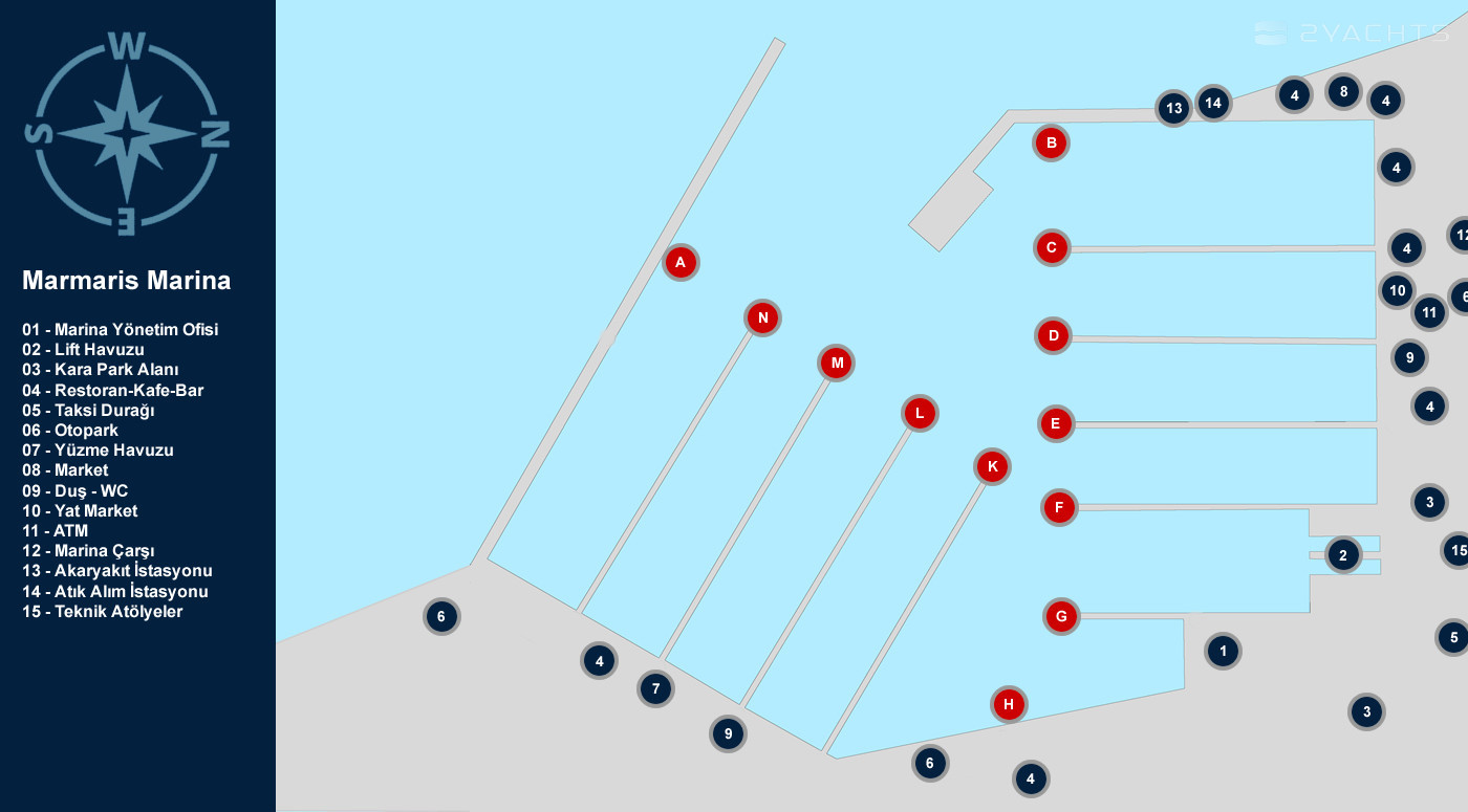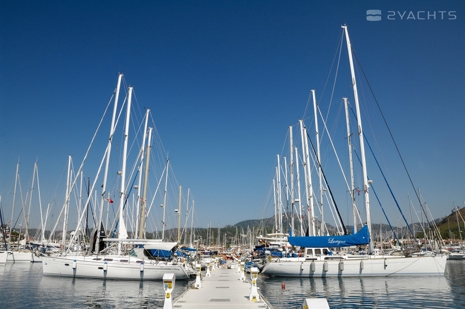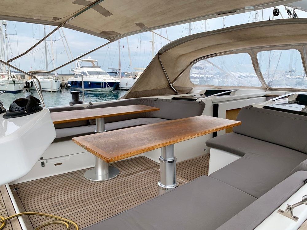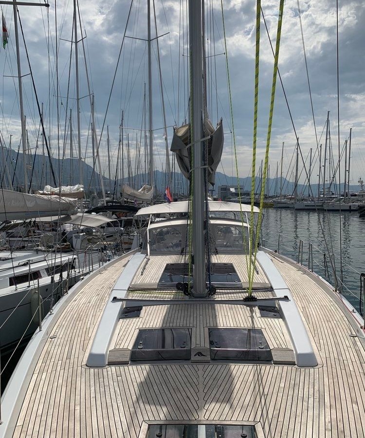 5-cabin sailing yacht Hanse 575 - Bolshoy was built in 2013, (renovated in 2020,) and it is docked in Netsel Marmaris Marina, Turkey.