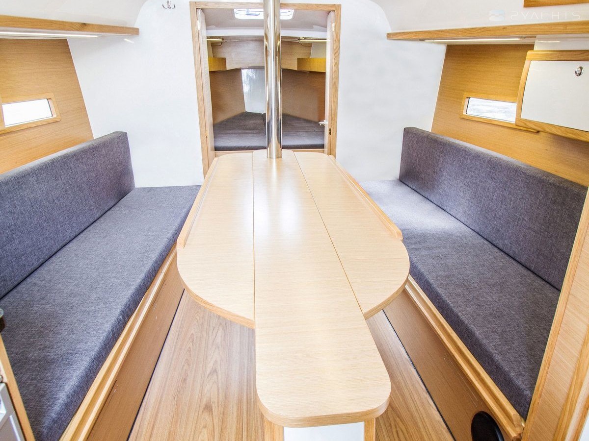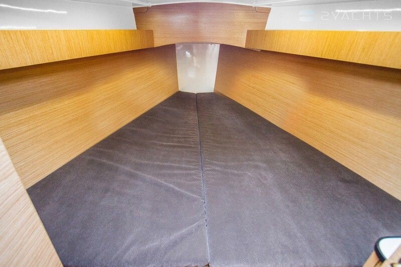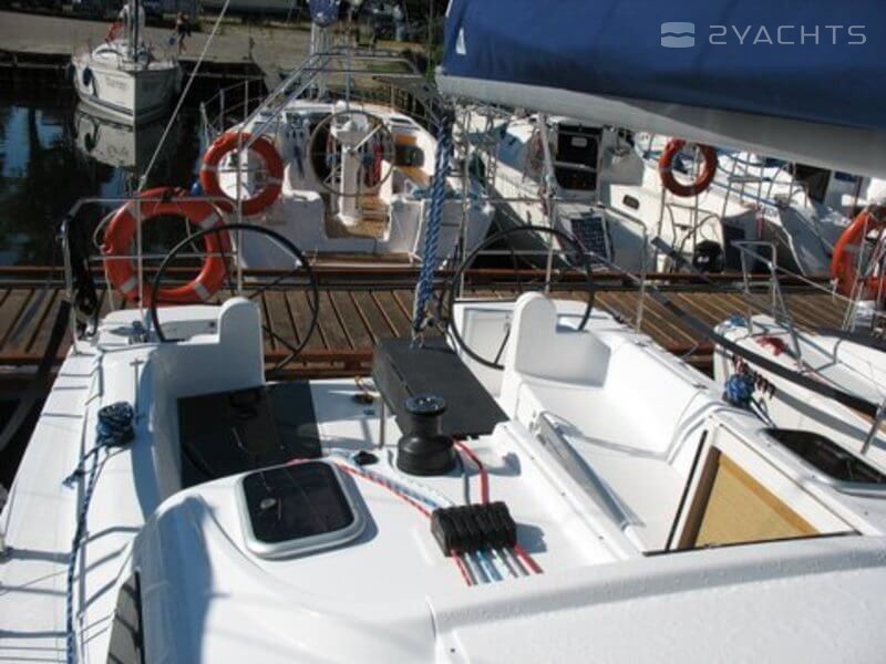 Boat equipment features classical mainsail. It also boasts a heating, an audio system and inside speakers. The fully-equipped galley includes a cooker, sink and kitchen utensils.