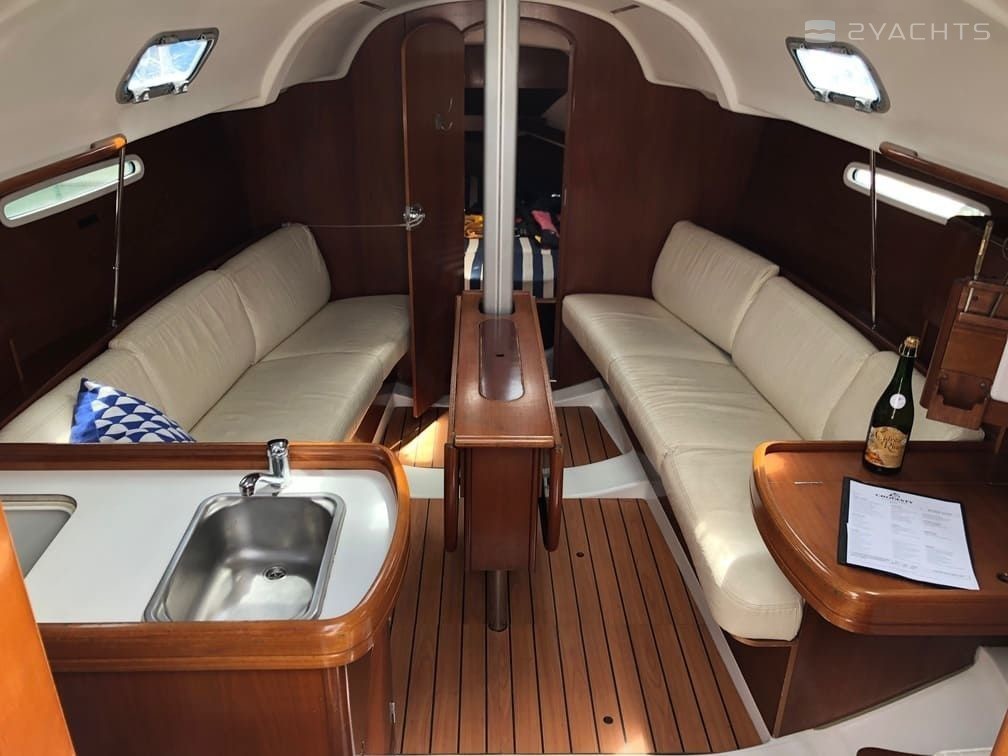 Boat equipment features classical mainsail. It also boasts an an audio system and inside speakers. The fully-equipped galley includes a cooker, sink and kitchen utensils.