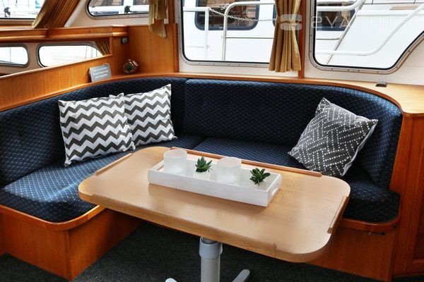 The Pedro Skiron 35 Kim houseboat was built in 2009, and it is docked in Friesland Boating Port, Netherlands.
