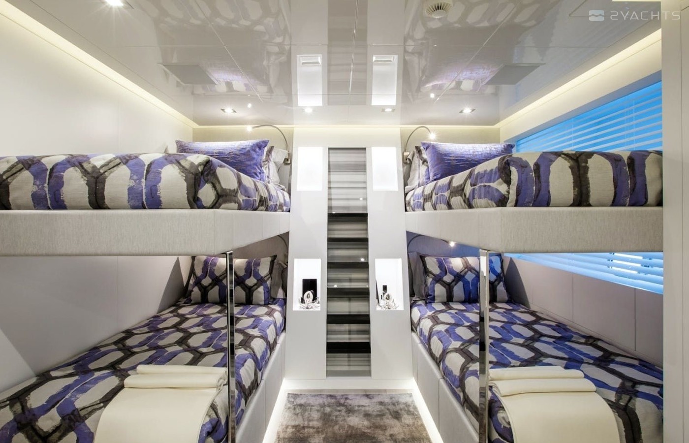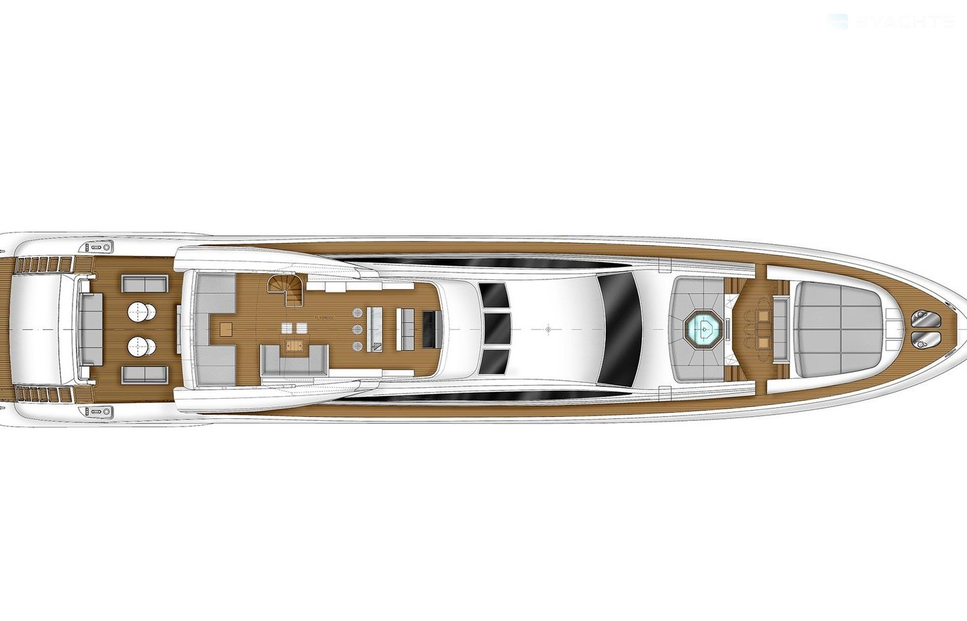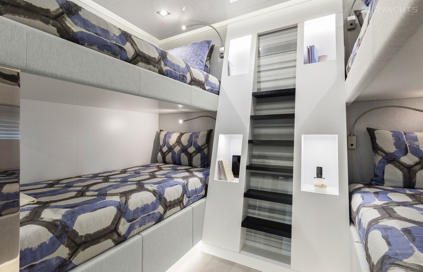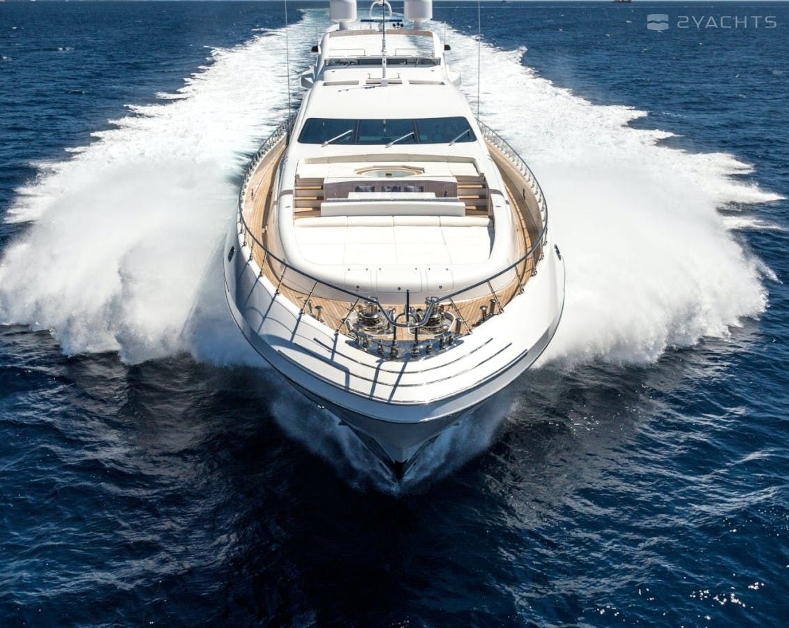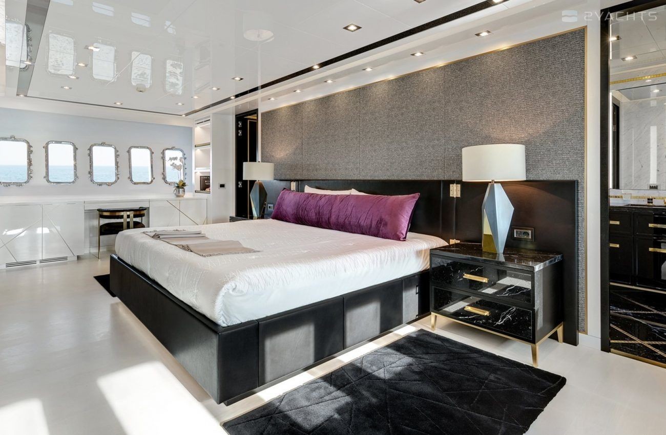 5-cabin motor yacht Mangusta 165E - Da Vinci was built in 2017, and it is docked in Port d'Ibiza, Spain.