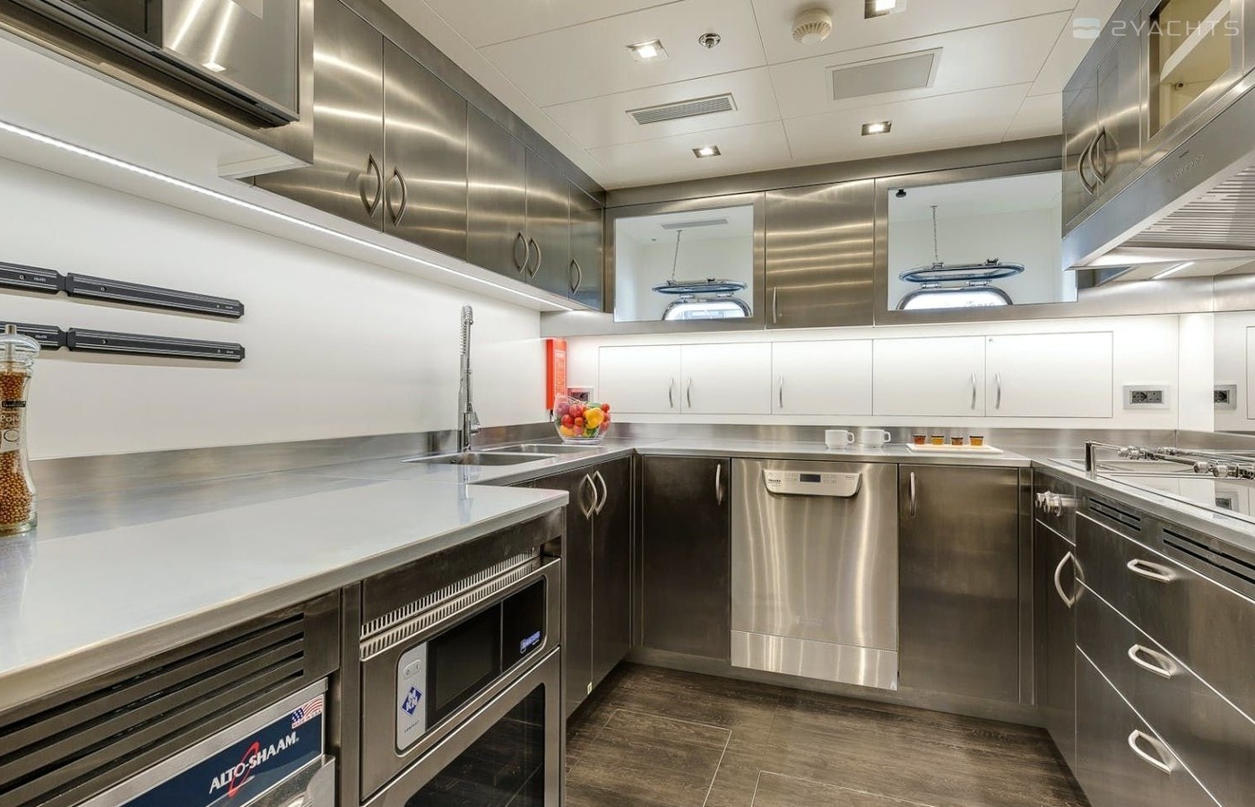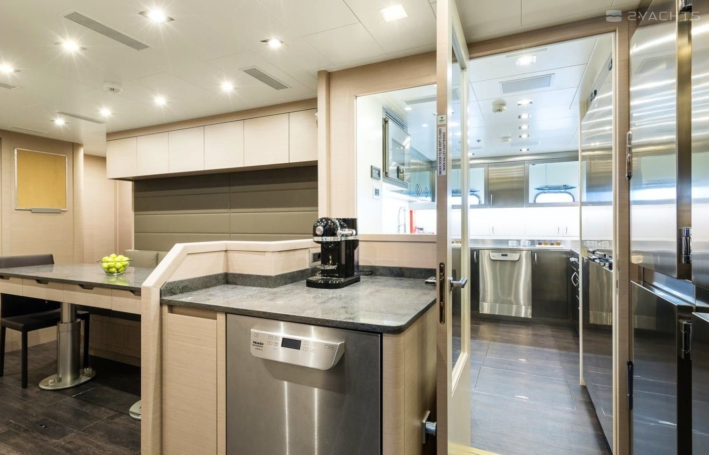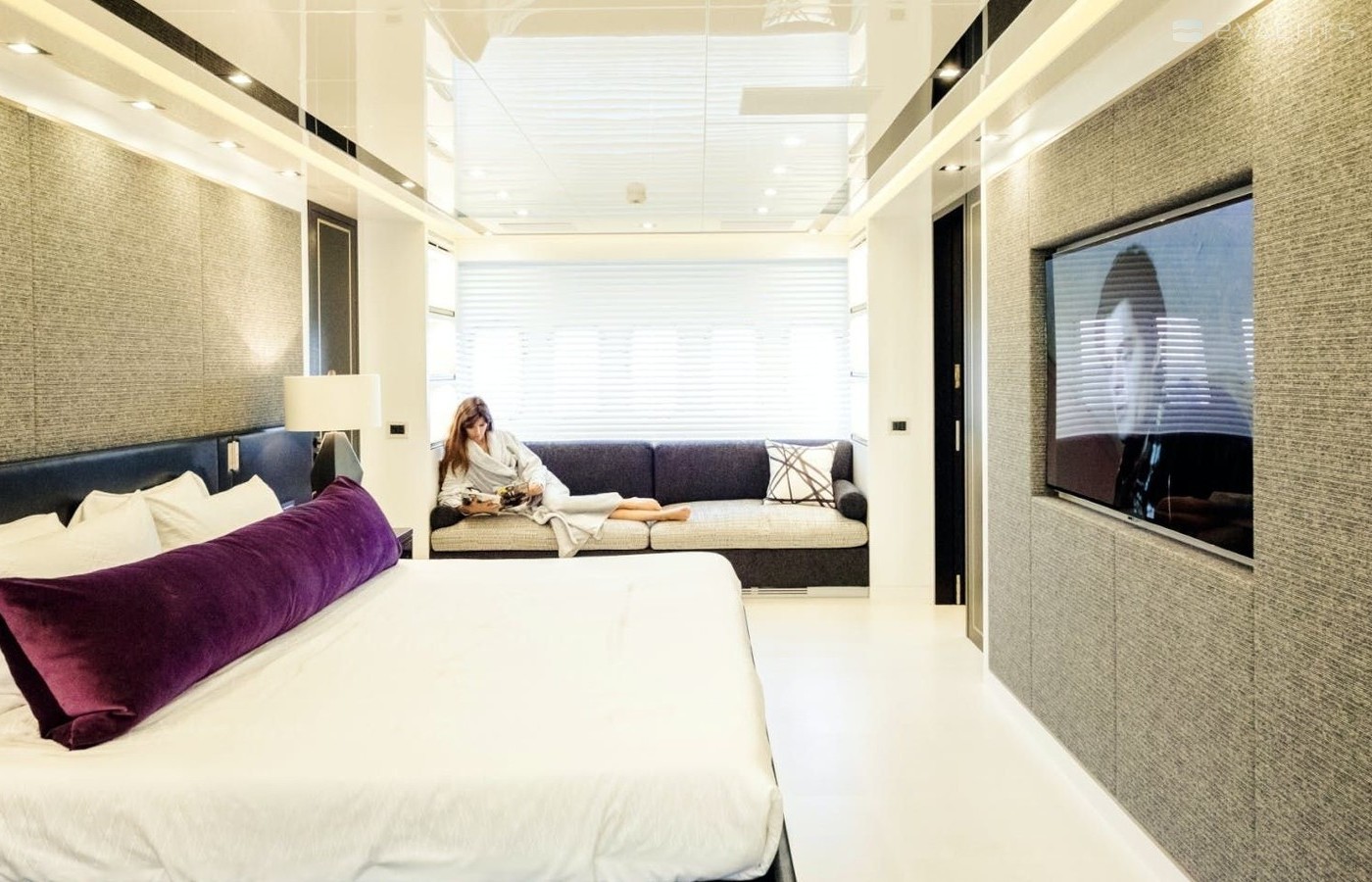 Boat equipment features radar, generator, salon gps plotter, bbq and bimini. It also boasts a jet ski, flat screen tv, heating, air conditioning and washing machine. The fully-equipped galley includes a microwave, dishwasher, ice maker, freezer and coffee machine.