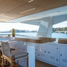 Boat equipment features radar, generator, salon gps plotter, bbq and bimini. It also boasts a jet ski, flat screen tv, heating, air conditioning and washing machine. The fully-equipped galley includes a microwave, dishwasher, ice maker, freezer and coffee machine.