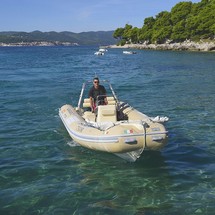 This motorboat is operated by the charter company Rent a Boat Orebic.