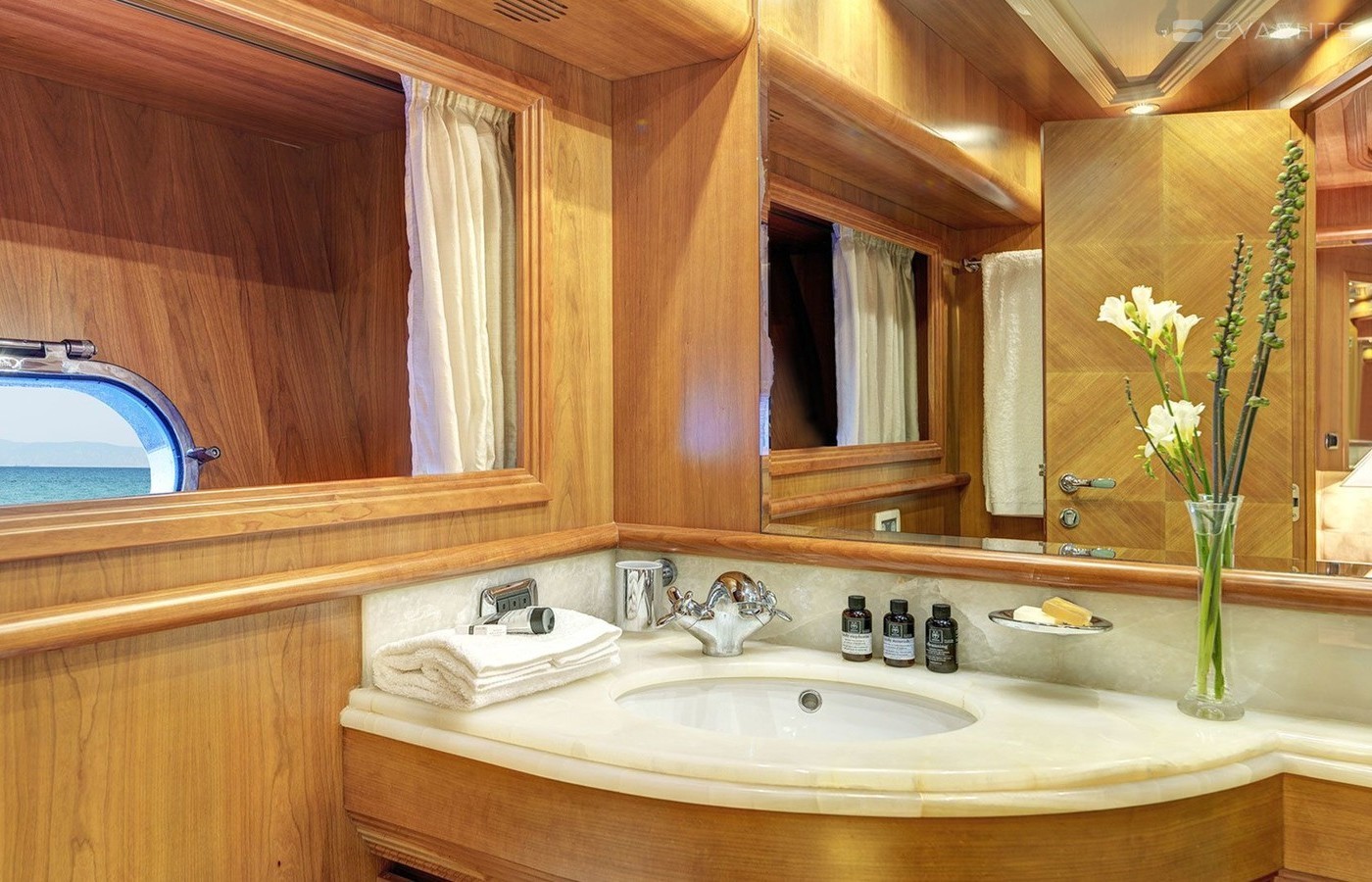 Motor yacht Aimilia offers 4 toilets with a shower.