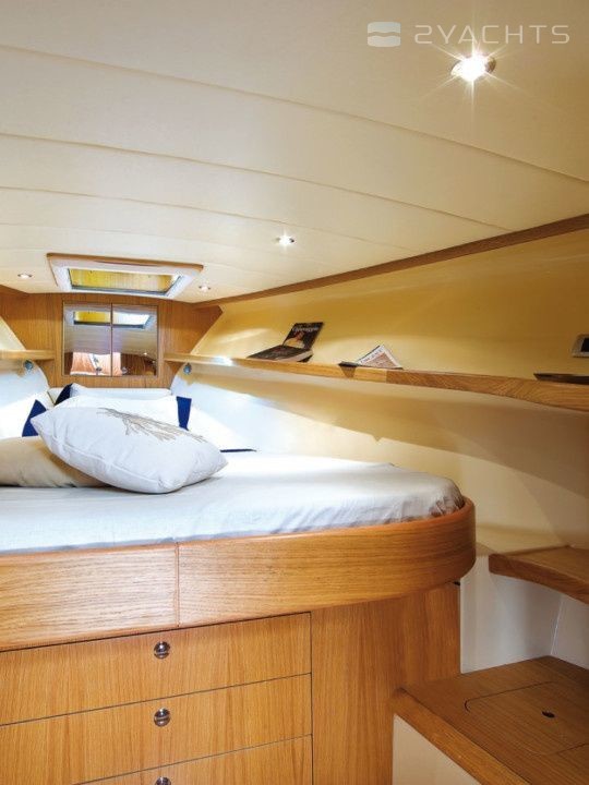 Boat equipment features bow thruster. It also boasts a flat screen tv, an audio system and inside speakers. The fully-equipped galley includes a microwave, freezer, oven, cooker and sink.