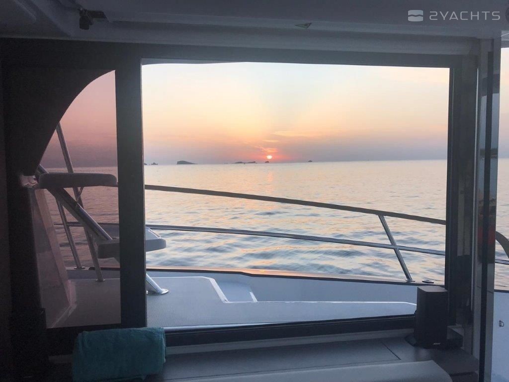 4-cabin power catamaran Bali 4.3 MY - Philya was built in 2019, and it is docked in Port Ginesta, Spain.