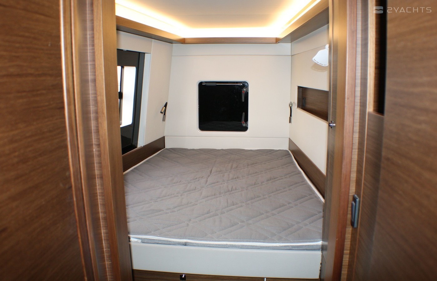 Boat equipment features classical mainsail, electric winches, generator, bimini and outside gps plotter. It also boasts a heating, air conditioning, an audio system, outside speakers and flybridge. The fully-equipped galley includes a freezer, coffee machine, oven, cooker and sink.