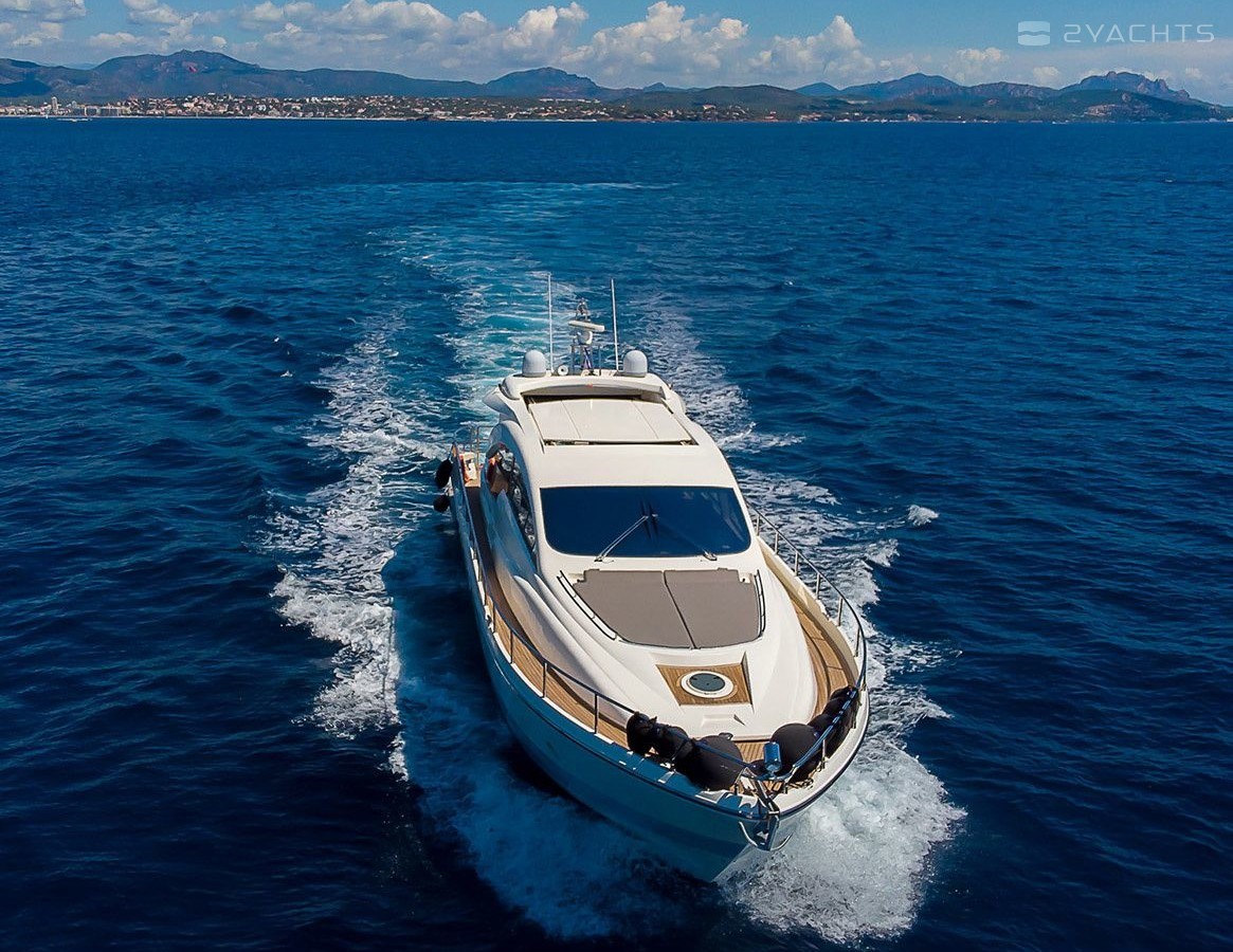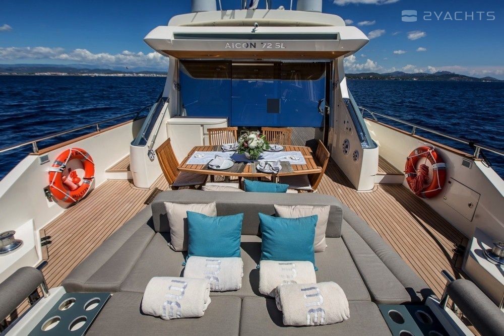 3-cabin motor yacht Aicon 72 - Manzanos 2 was built in 2006, (renovated in 2020,) and it is docked in Marina Vela Barcelona, Spain.