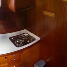A well-equipped galley with cooker, sink and kitchen utensils is prepared to facilitate cooking. There is also a coffee machine on board.