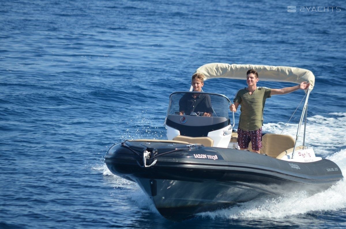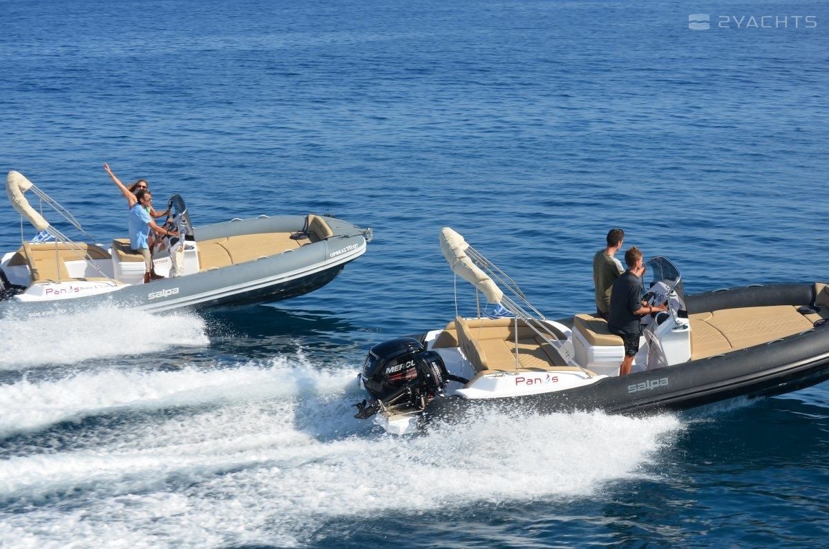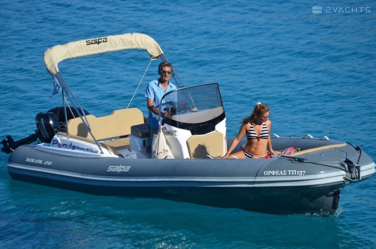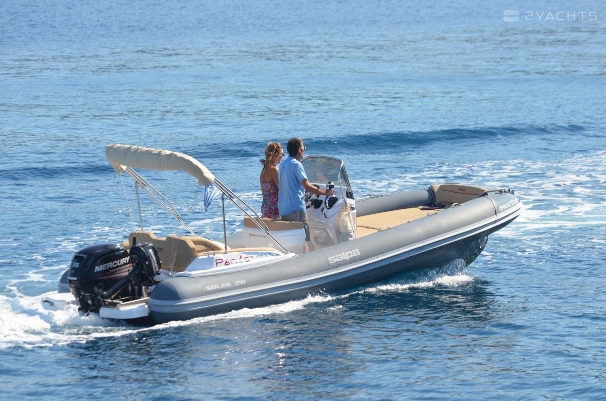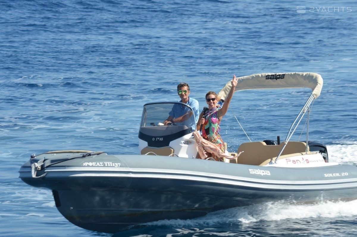 This 2019 Salpa Soleil 21 - Orfeas is suitable for 7 people. It is docked in Longos, Greece.