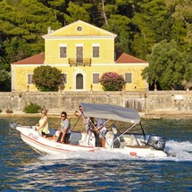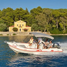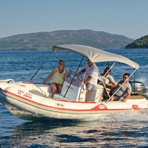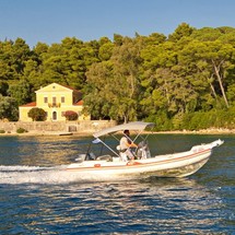 This motorboat is operated by the charter company Pipis Boats.